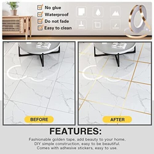 Banda Adeziva Decorativa pentru Acoperirea Rosturilor Gresie si Faianta, Rola 50m x 10mm, Auriu, CBD CORAL BEST DEALS 150 g