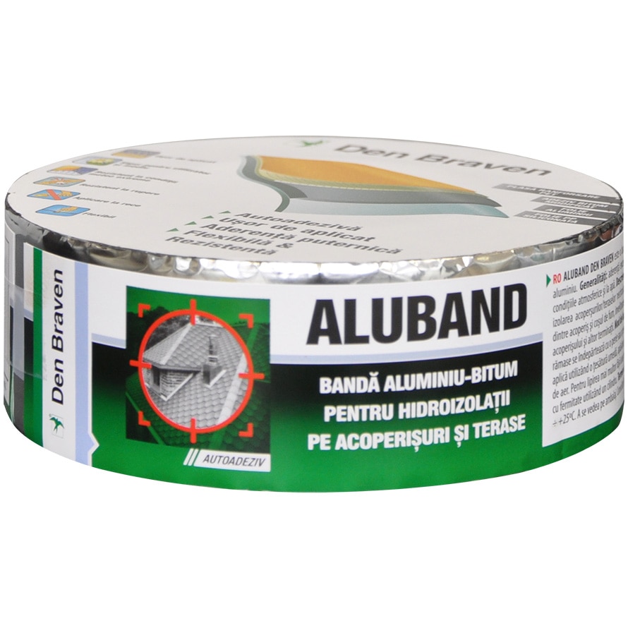 Banda aluminiu-bitum Den Braven RolaISO, pentru hidroizolatii pe acoperisuri si terase, autoadeziv, 1.2mm, 5cm, 10m