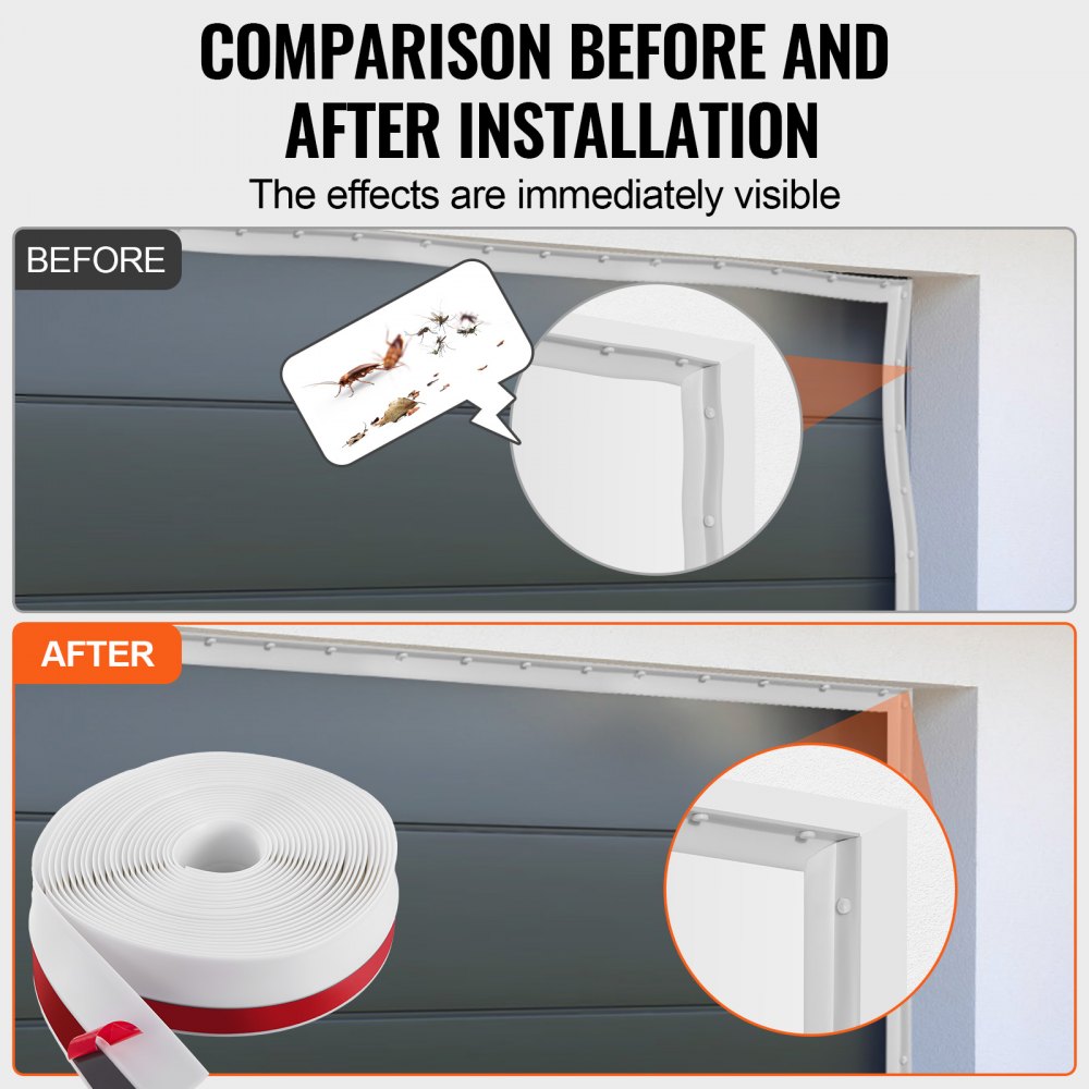 Protectie multifunctionala pentru garaj: Banda noastra de etansare pentru garaj se potriveste de-a lungul partii superioare si laterale ale usilor de garaj, oferind izolatie, rezistenta la vant, reducerea zgomotului si protectie impotriva particulelor mici si a frunzelor. Astfel, ofera o protectie completa pentru garajul dumneavoastra.