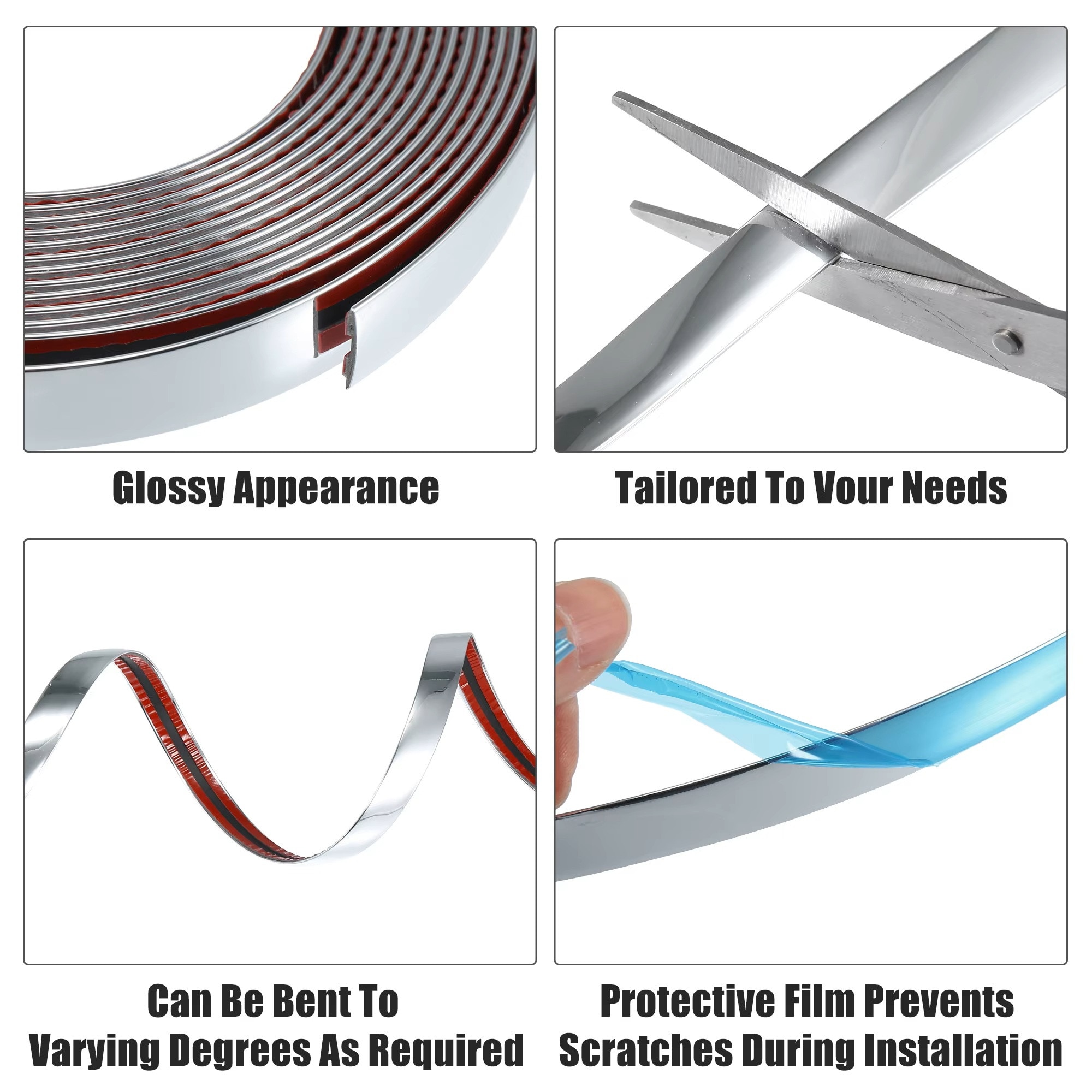 Banda Decorativa Autoadeziva, 1.1 cm x 5 m, pentru Pereti, Mobilier, Decoratiuni Auto si Interioare, Rezistenta la Apa, Durabila, Usor de Aplicat, Silver, Luxer