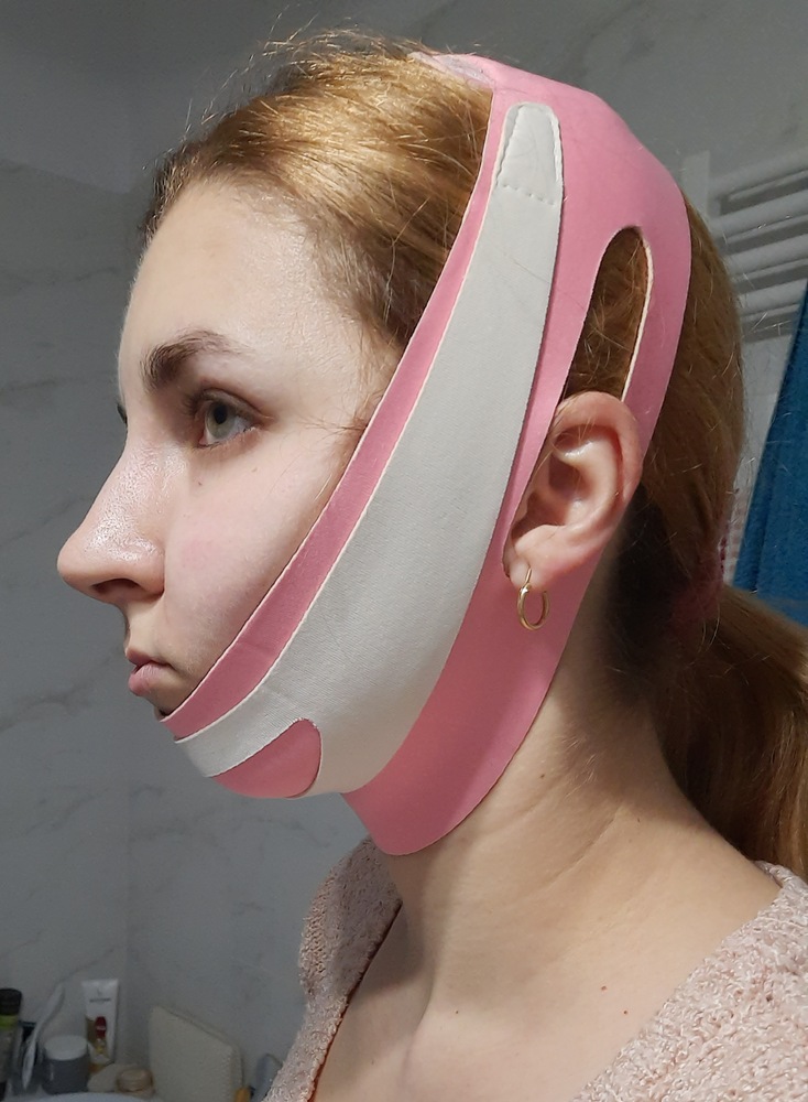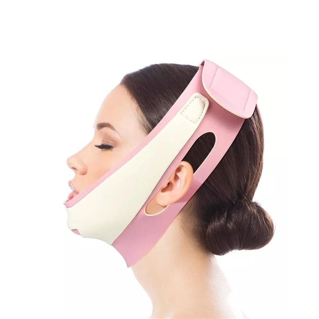 Banda faciala pentru lifting, SilkTouch, V-shape, Reglabila, Roz