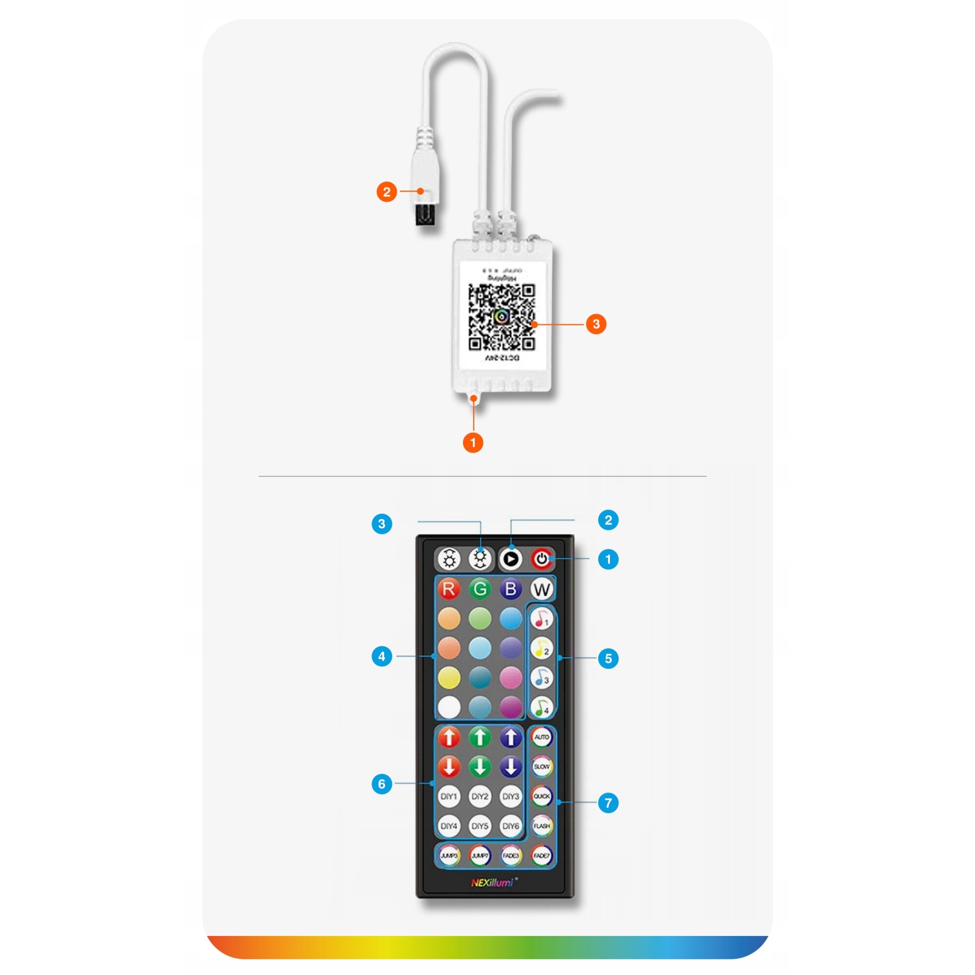 | Continut pachet | 1 x Sursa de alimentare 1 x Telecomanda IR 1 x Controller Bluetooth 2 x Banda LED 7,5m 1 x Manual de utilizare pentru descarcarea aplicatiei mobile (cu cod QR) |