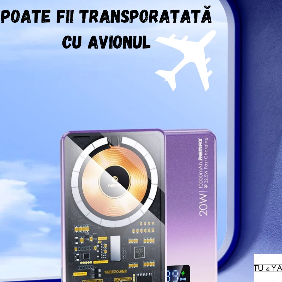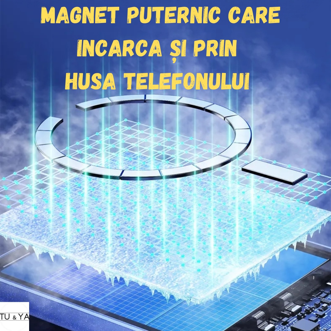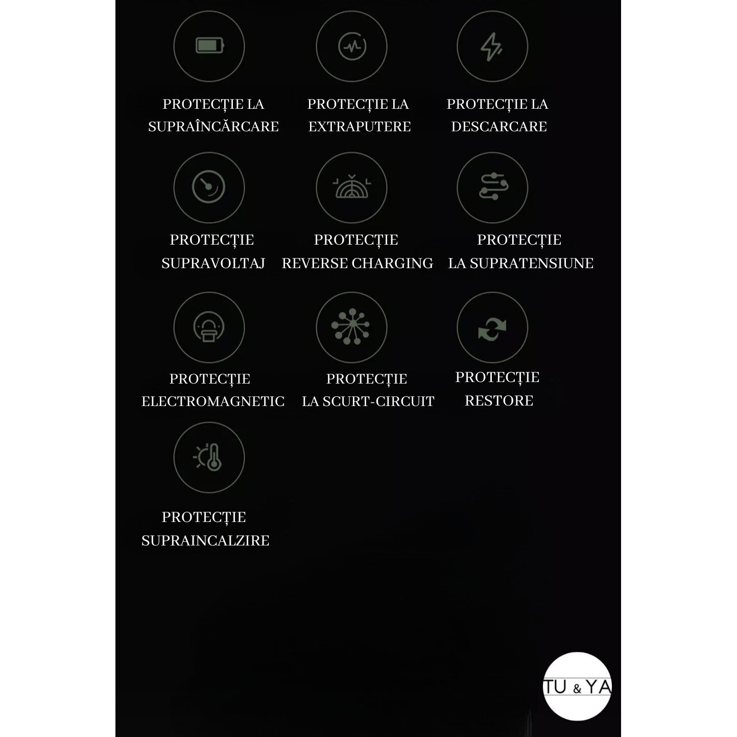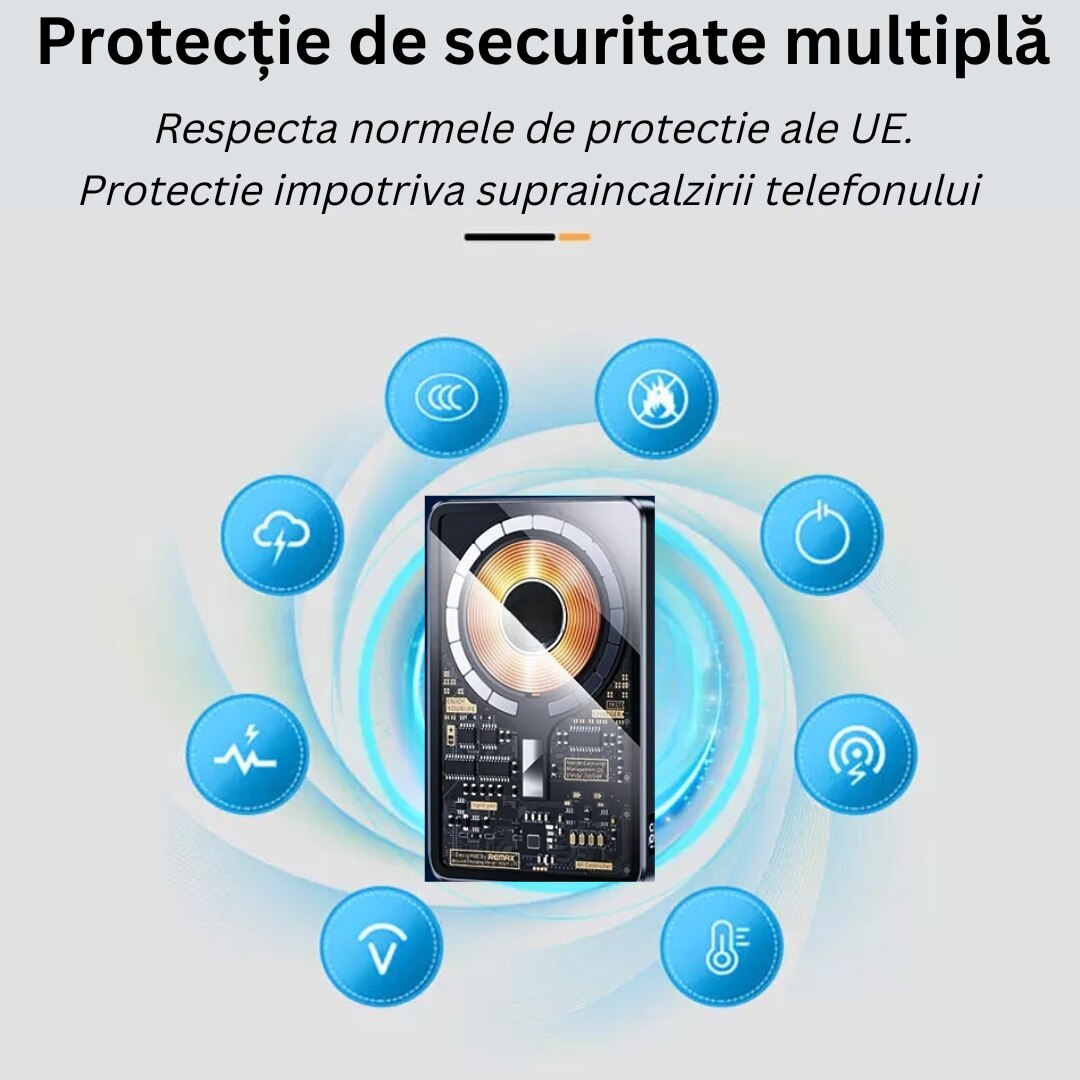Baterie Externa Magnetica, Capacitate 10.000 mAh. wireless TU&YA®, Universala si pentru Tigara electronica prin cablu USB, Incarcare wireless Fast Charge 15W, 20W prin cablu, Compatibila cu Magsafe, Conform standard Qi, Mov