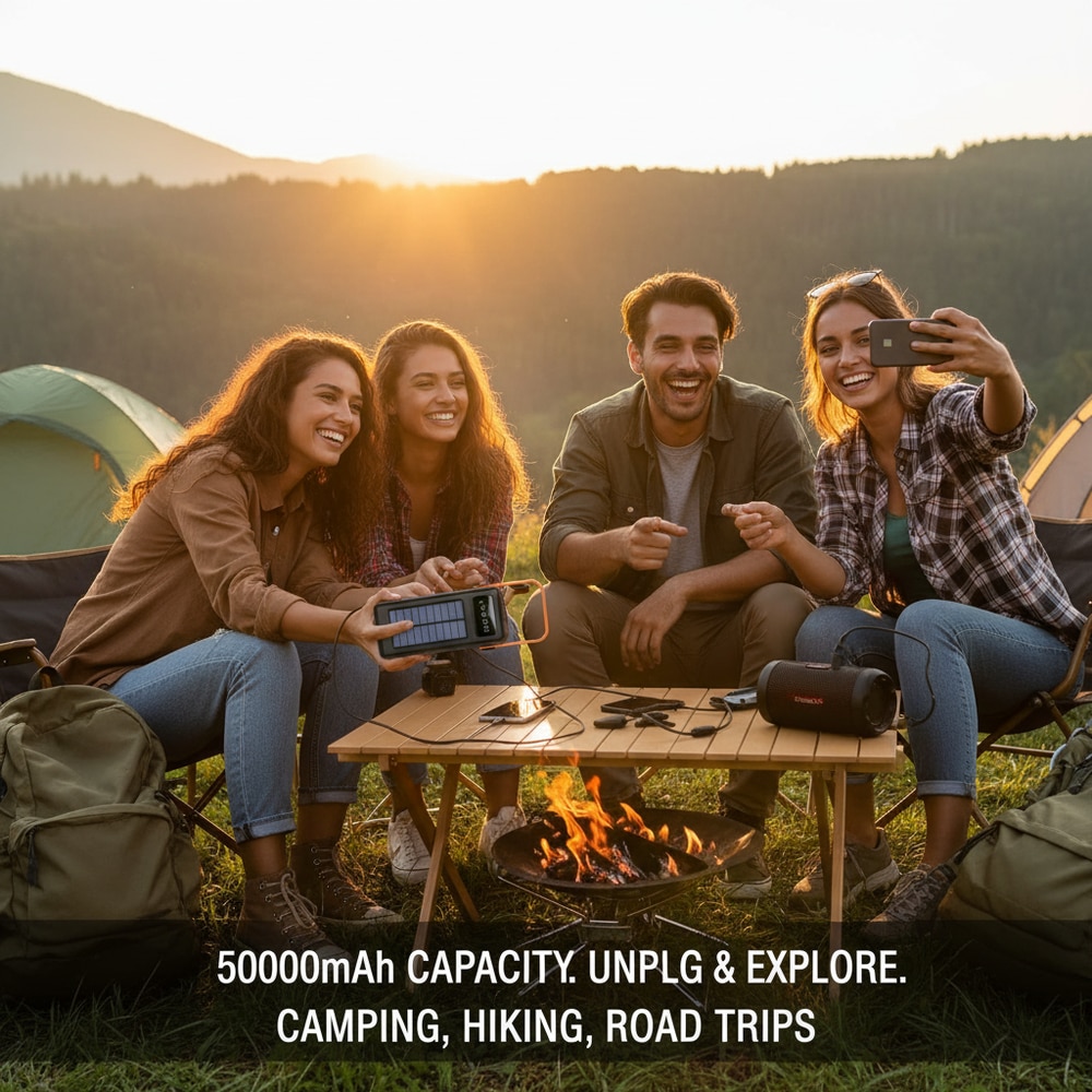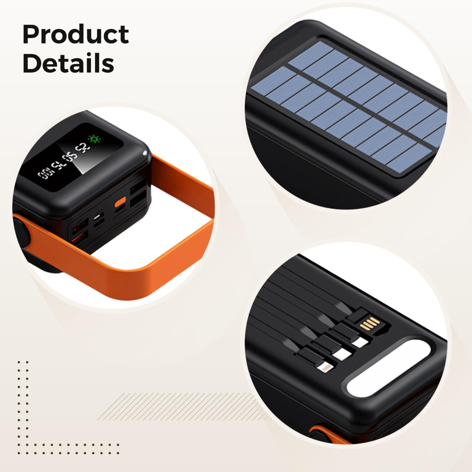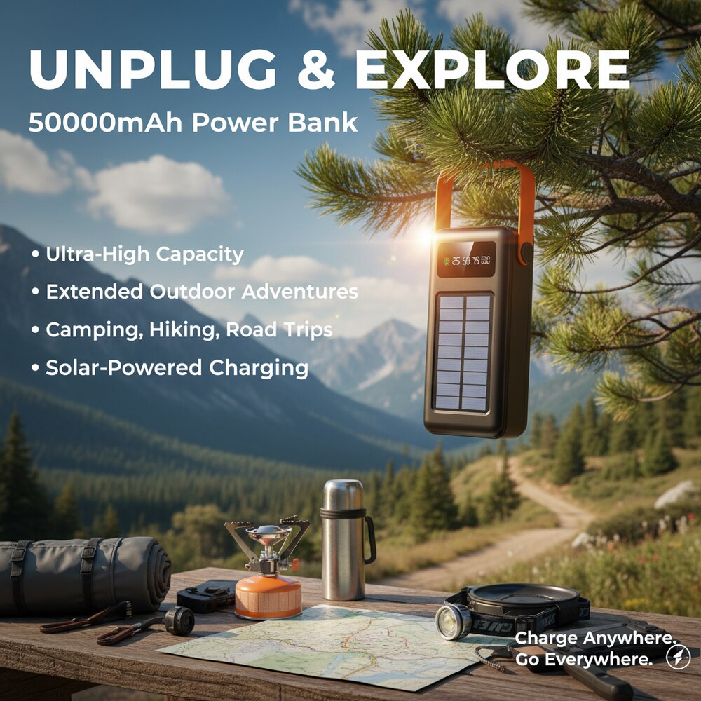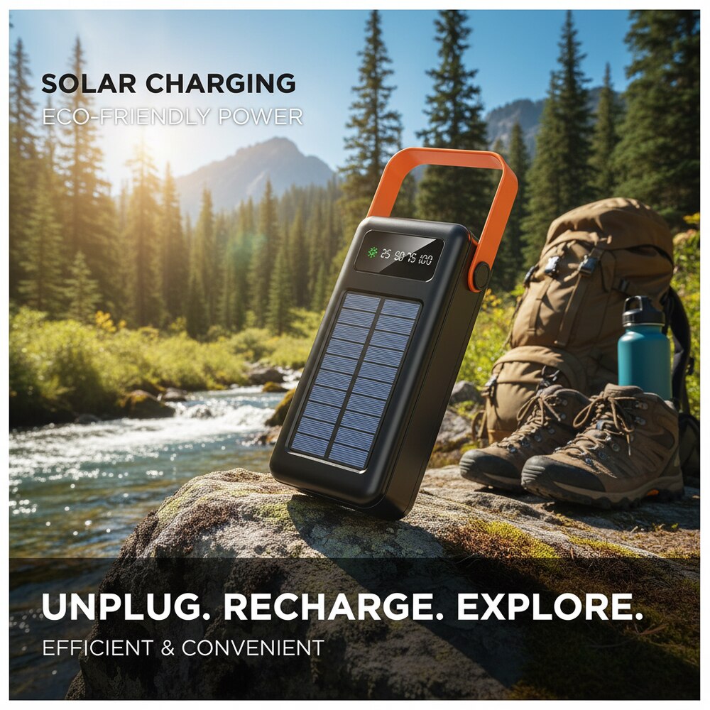 Baterie Externa Solara, Power Bank 50.000 mAh, 1 Panouri, Power bank pentru exterior, Negru