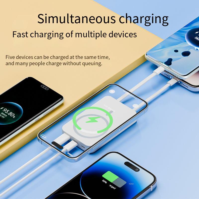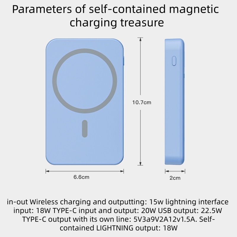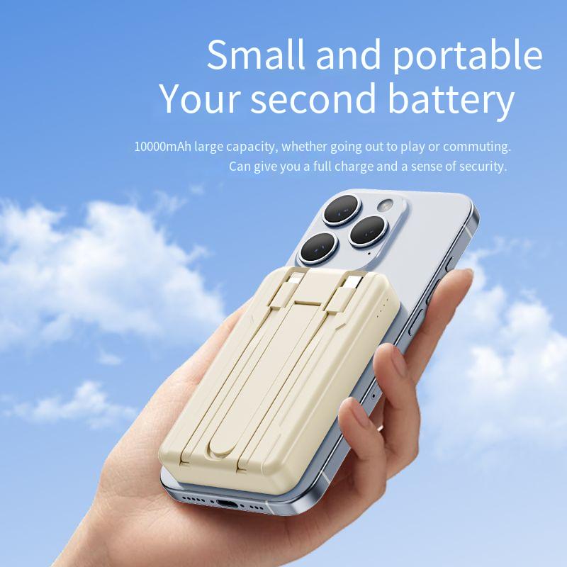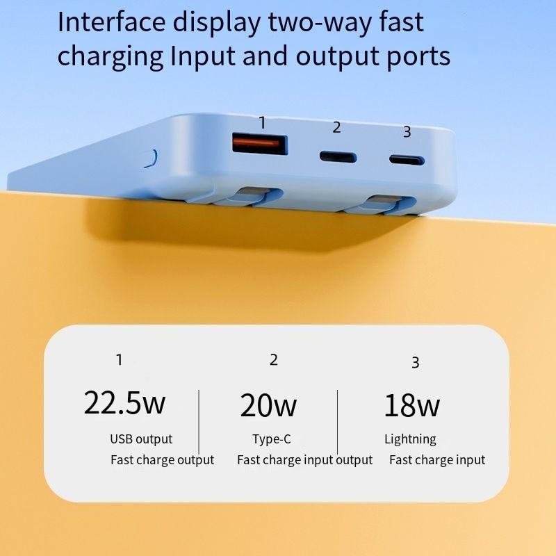 Baterie externa Yaju 10.000mAh, incarcare rapida 22.5W, 3 porturi USB, wireless, Rlb, 107x66x20mm