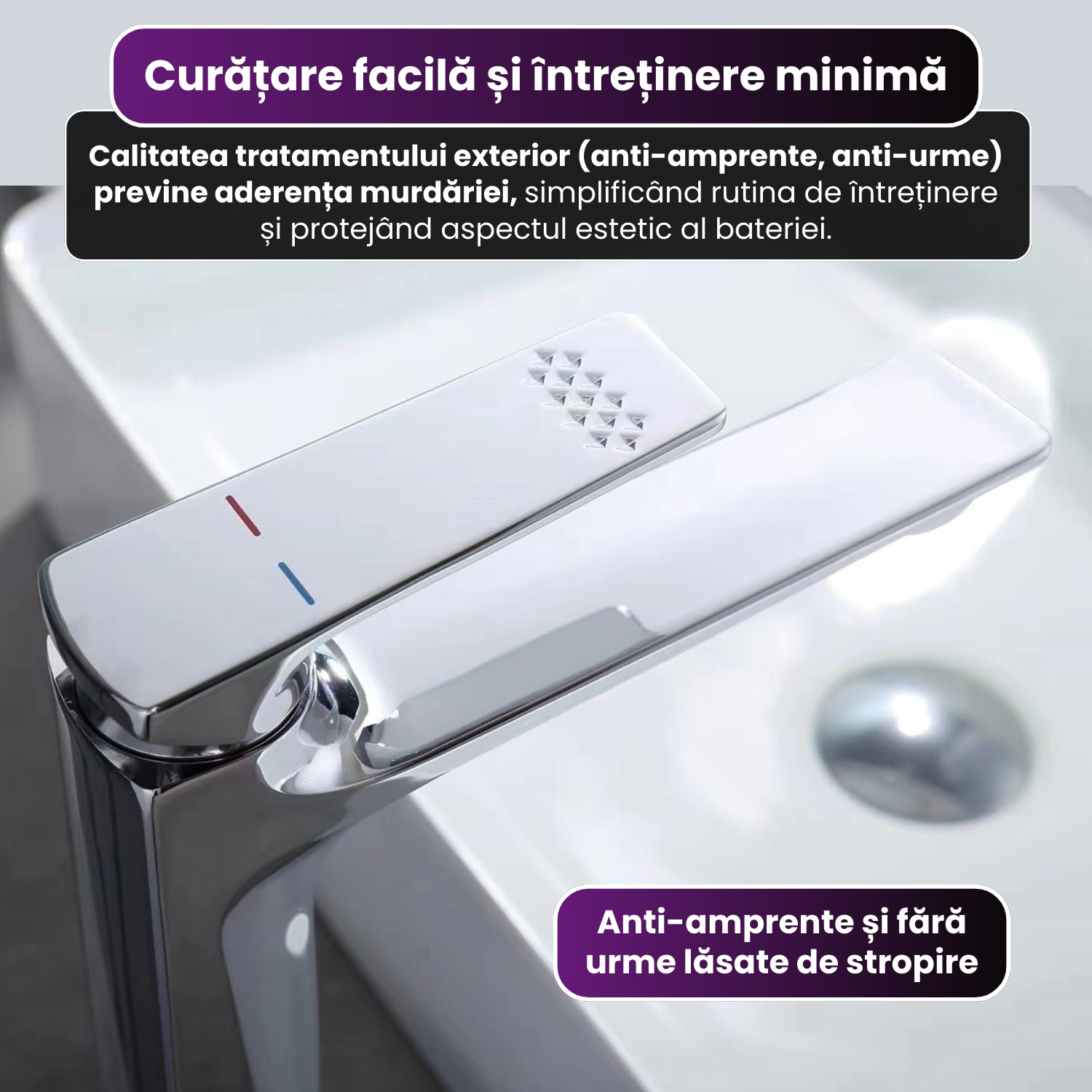 Acest tratament tehnic ofera bateriei o rezistenta sporita la factorii externi si faciliteaza curatarea rapida a depunerilor, mentinand un aspect neutru si curat.
