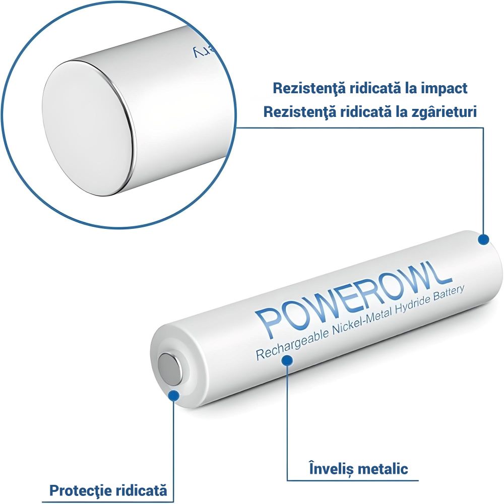 Baterii reincarcabile POWEROWL® AAA 8 buc, HR03, 1.2V, acumulatori Ni-MH de 1000 mAh reincarcabili, incarcare rapida, 2 cutii de depozitare incluse