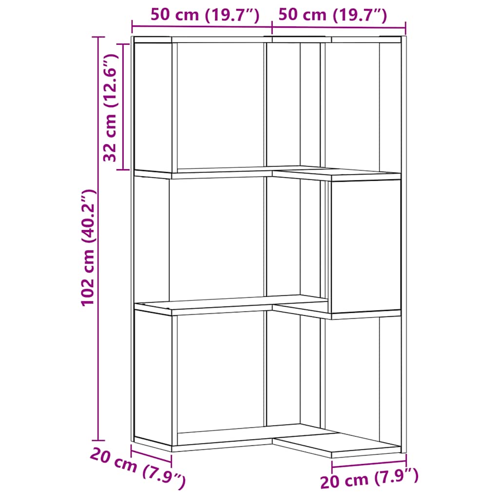 Biblioteca 3 nivel vidaXL, stejar artizanal, 50x50x102 cm, lemn prelucrat, 13 Kg
