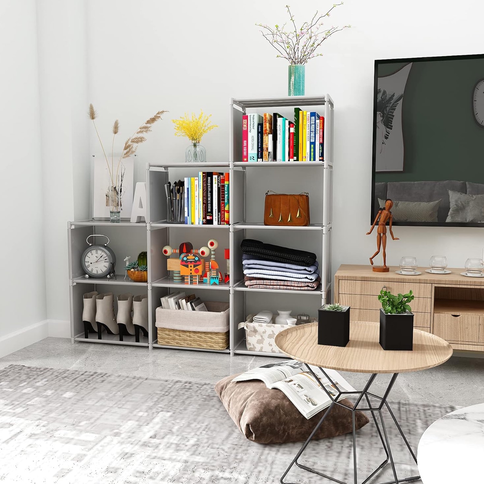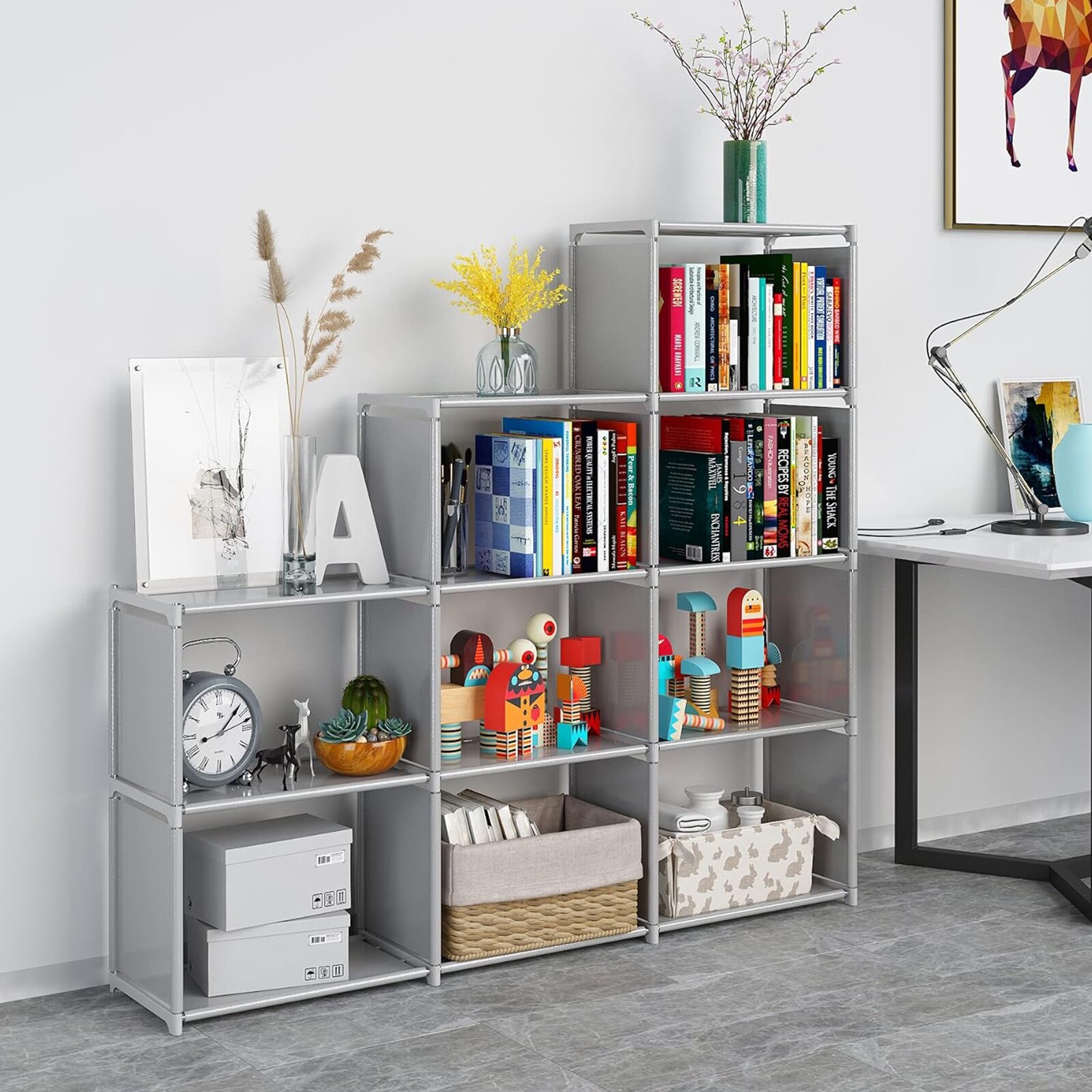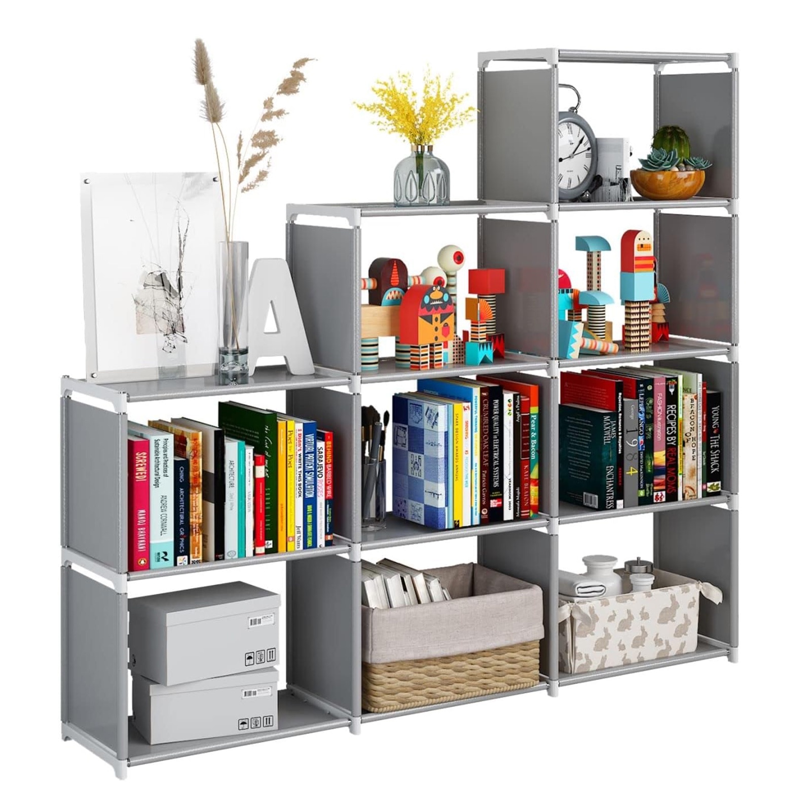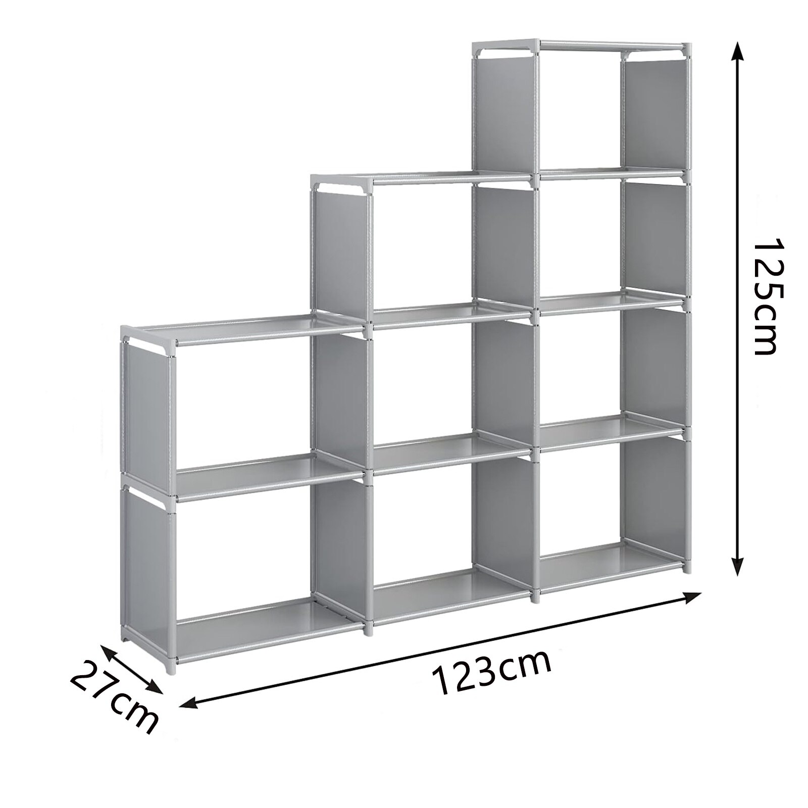 Biblioteca, SINBINTA, Mobila living si biblioteci, Biblioteca 9 rafturi vida, Unitate de depozitare, Pentru camera de zi, camera de studiu, dormitor, 123 x 27 x 125cm, Gri