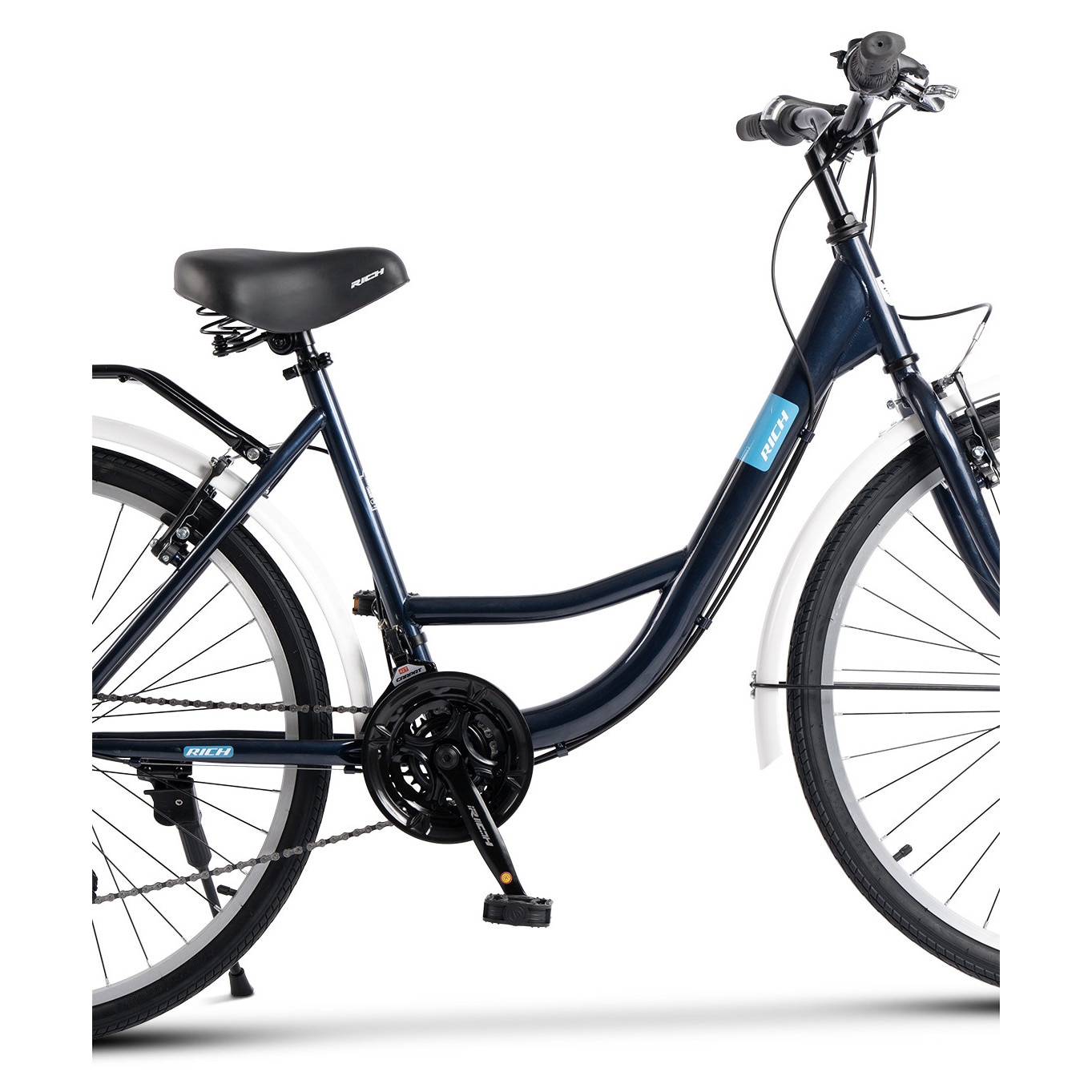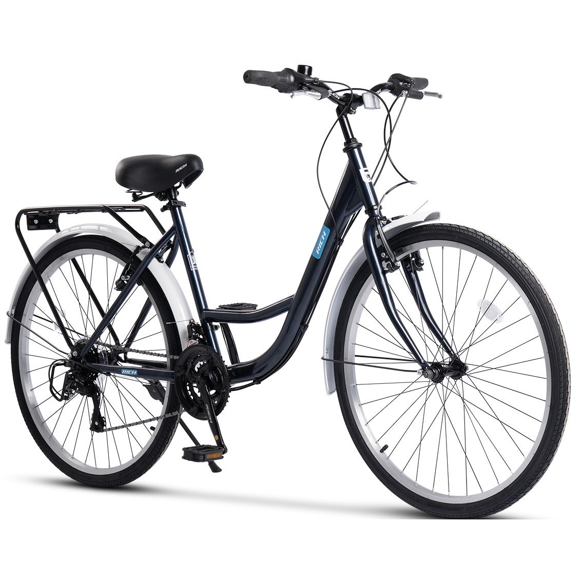 Bicicleta City Classic, Echipare Linie Carpat, 21 Viteze, Roti 26 Inch, Frane V-Brake, Rich R2632A, Albastru
