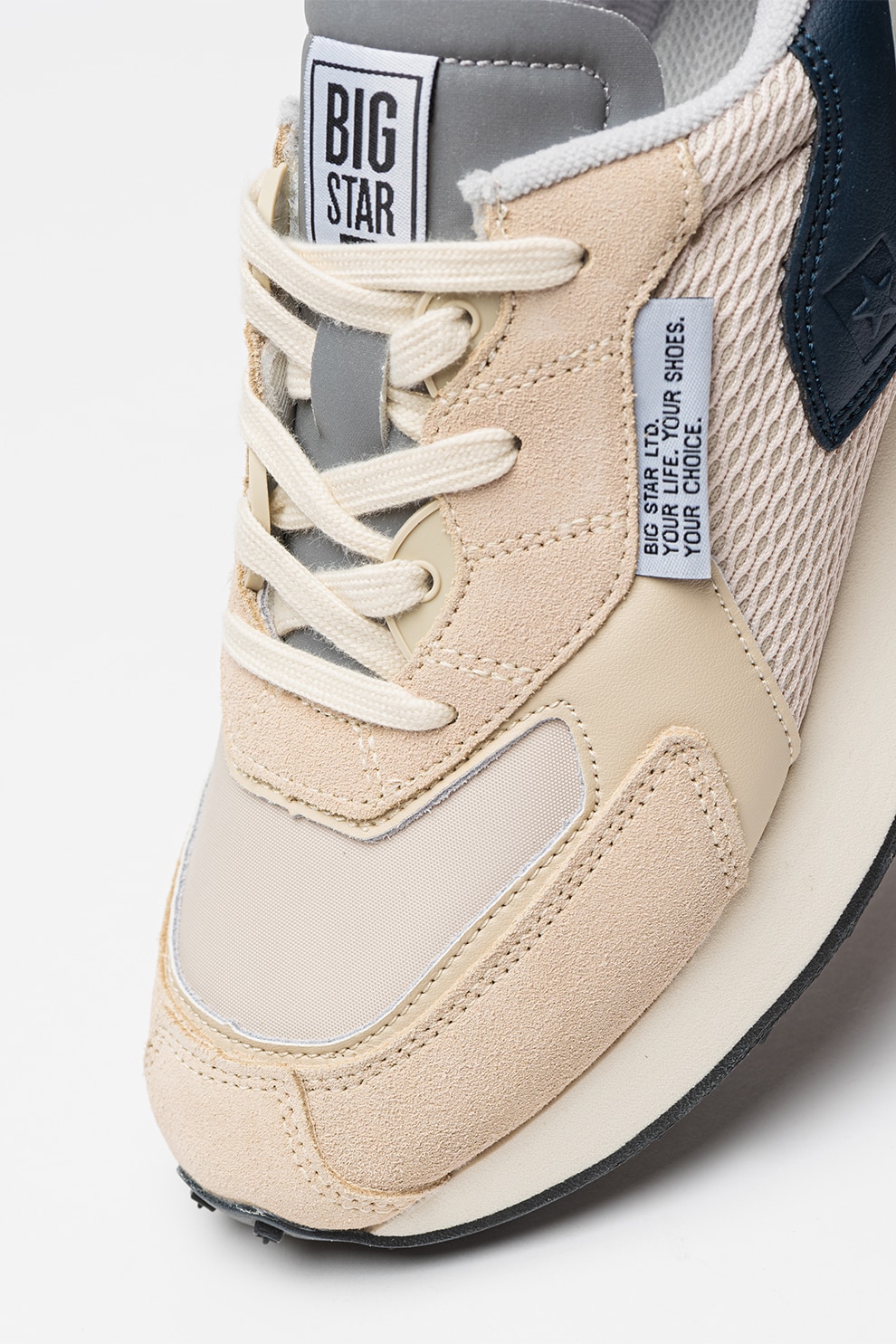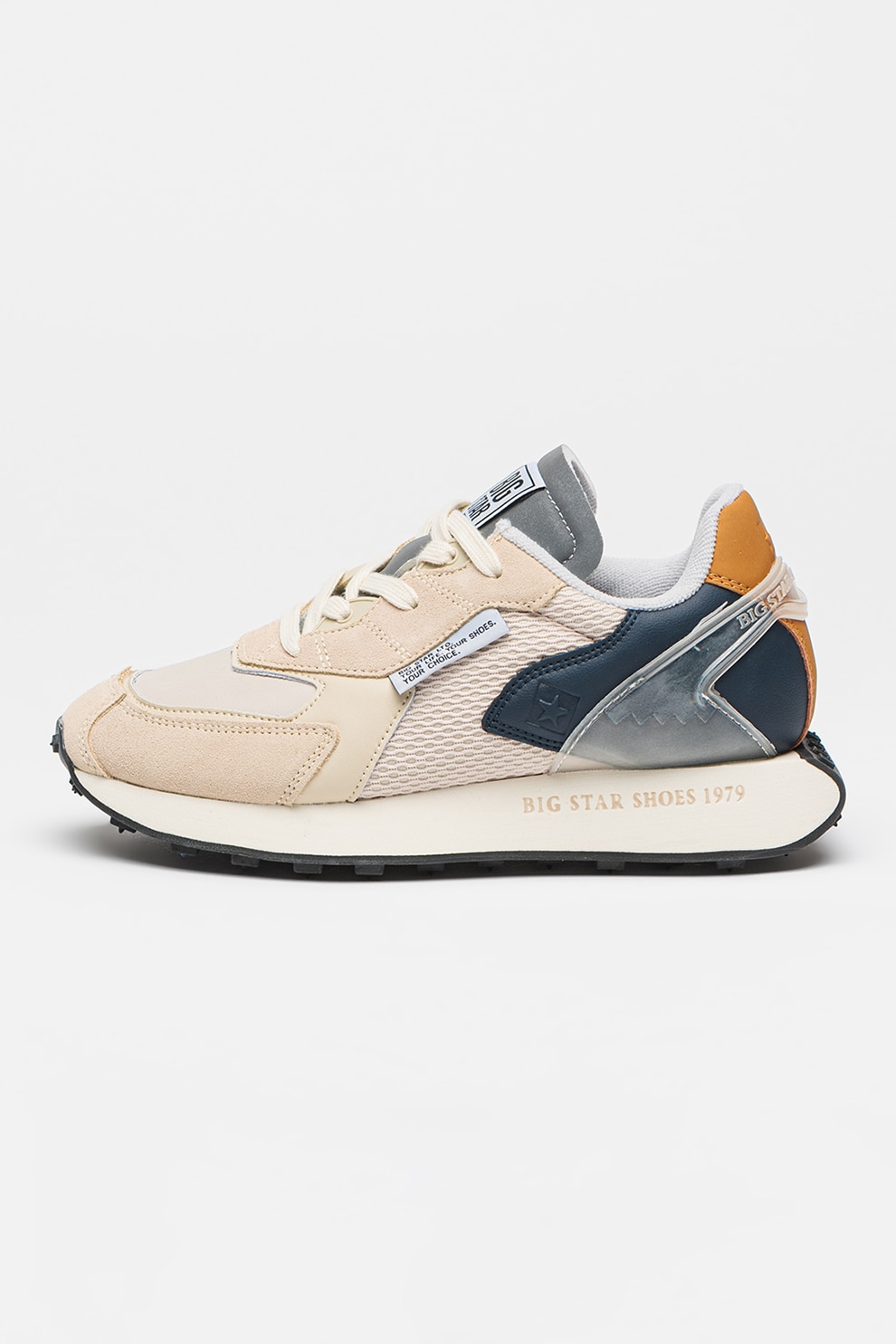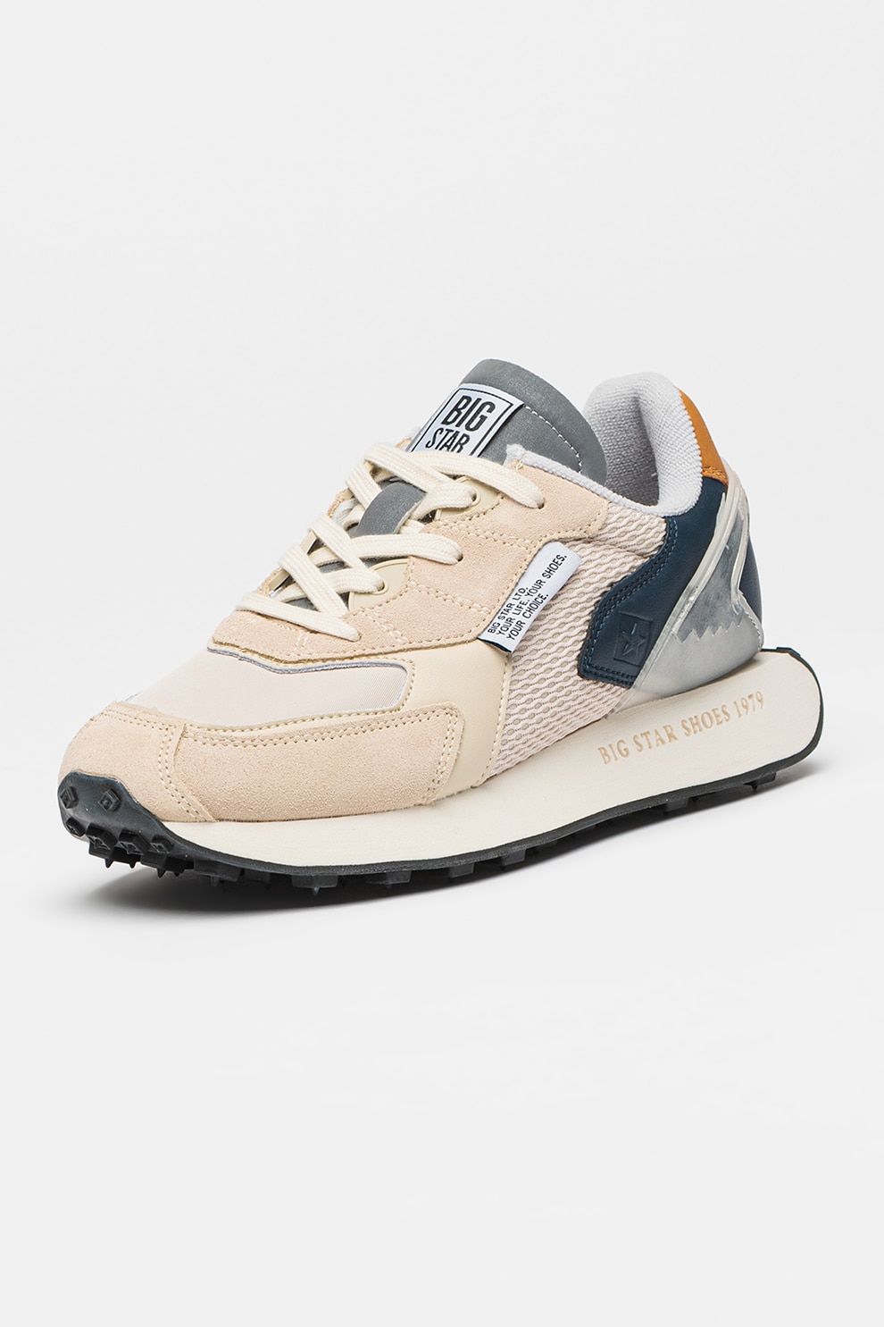 Big Star - Pantofi sport din piele si piele ecologica RR274998, Bej deschis/Bleumarin