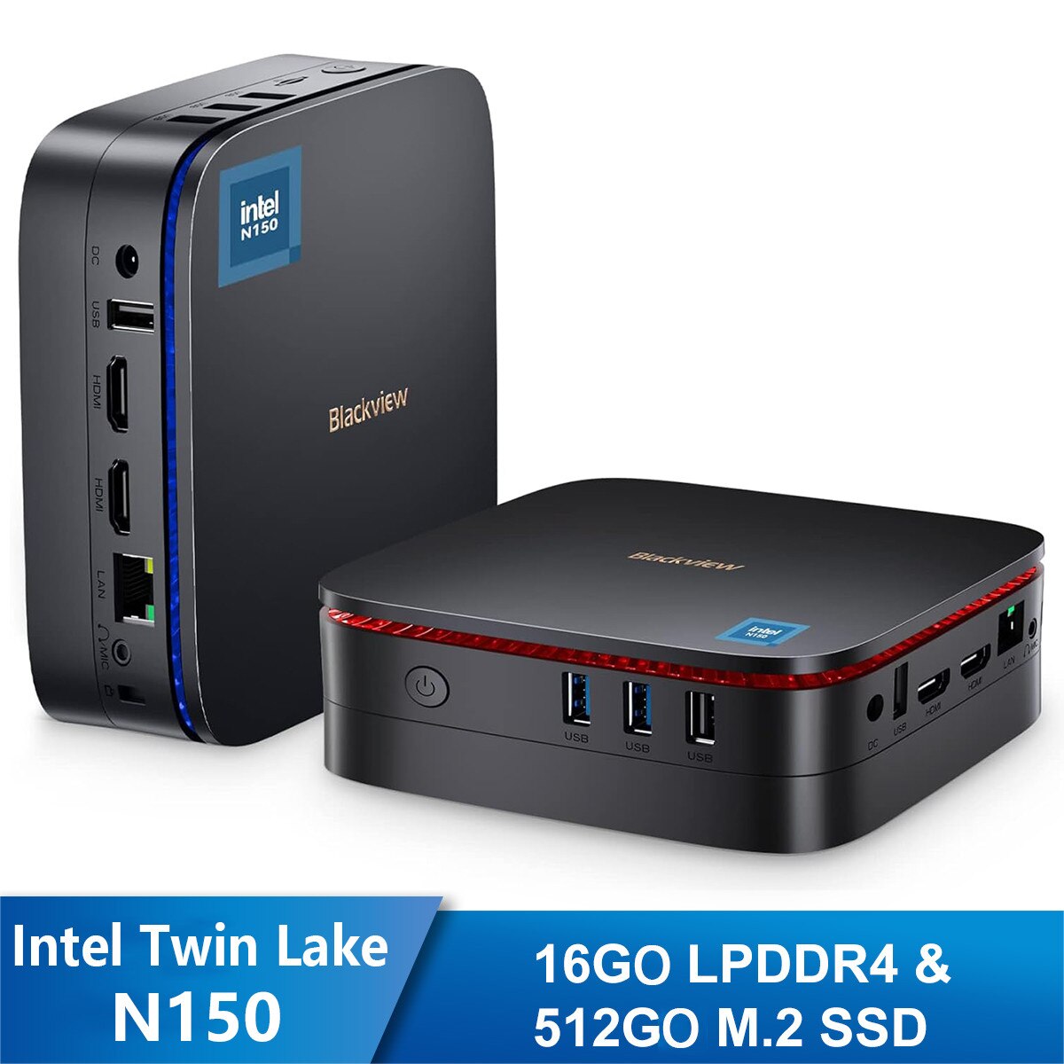 Blackview MP60 Mini PC, 16GB RAM 512GB SSD Mini Computer, W-11 Pro Ultra Compact Desktop Computer for Home Office Business, Dual HDMI 4K/Wi-Fi 5/Big Fan/VESA Mount, Gris