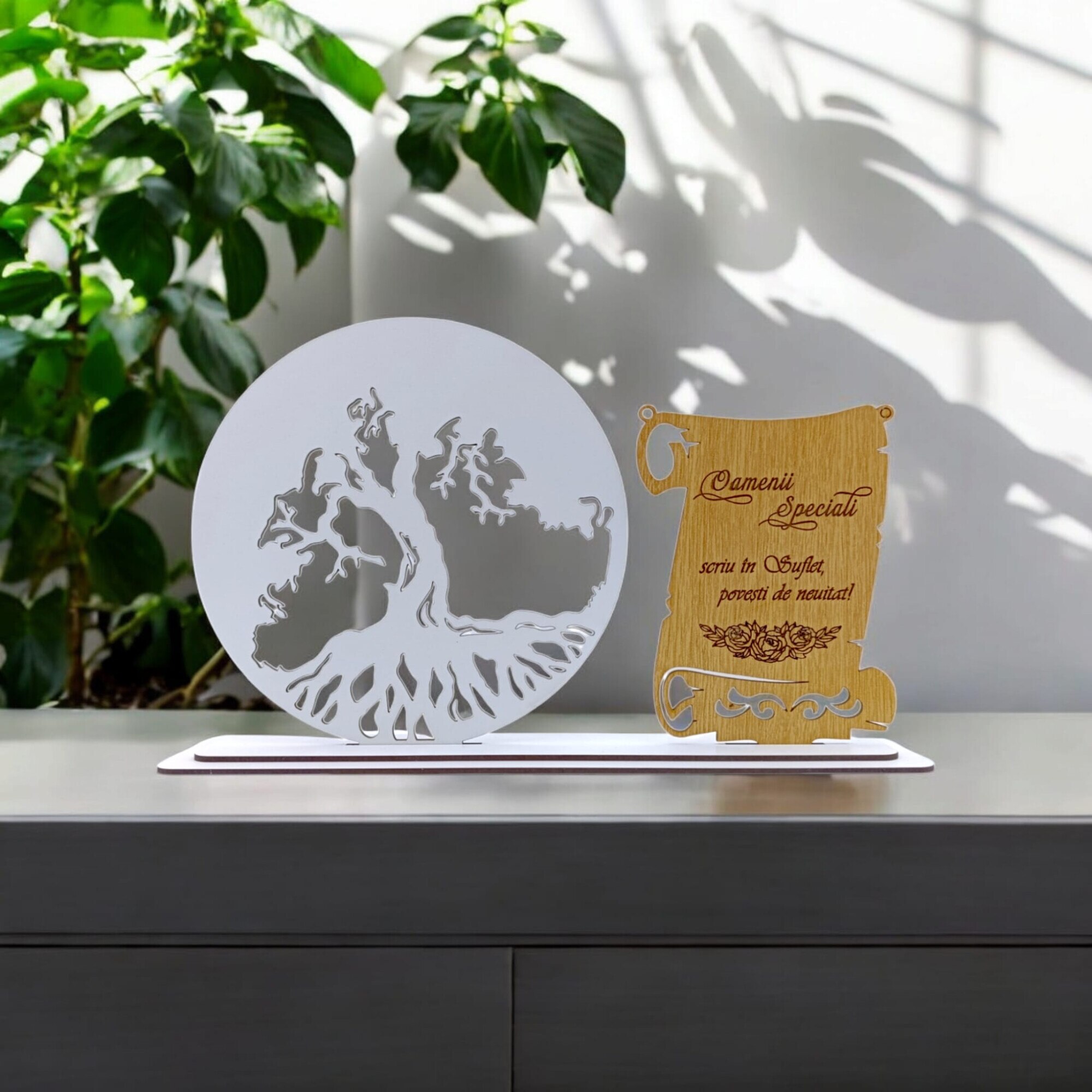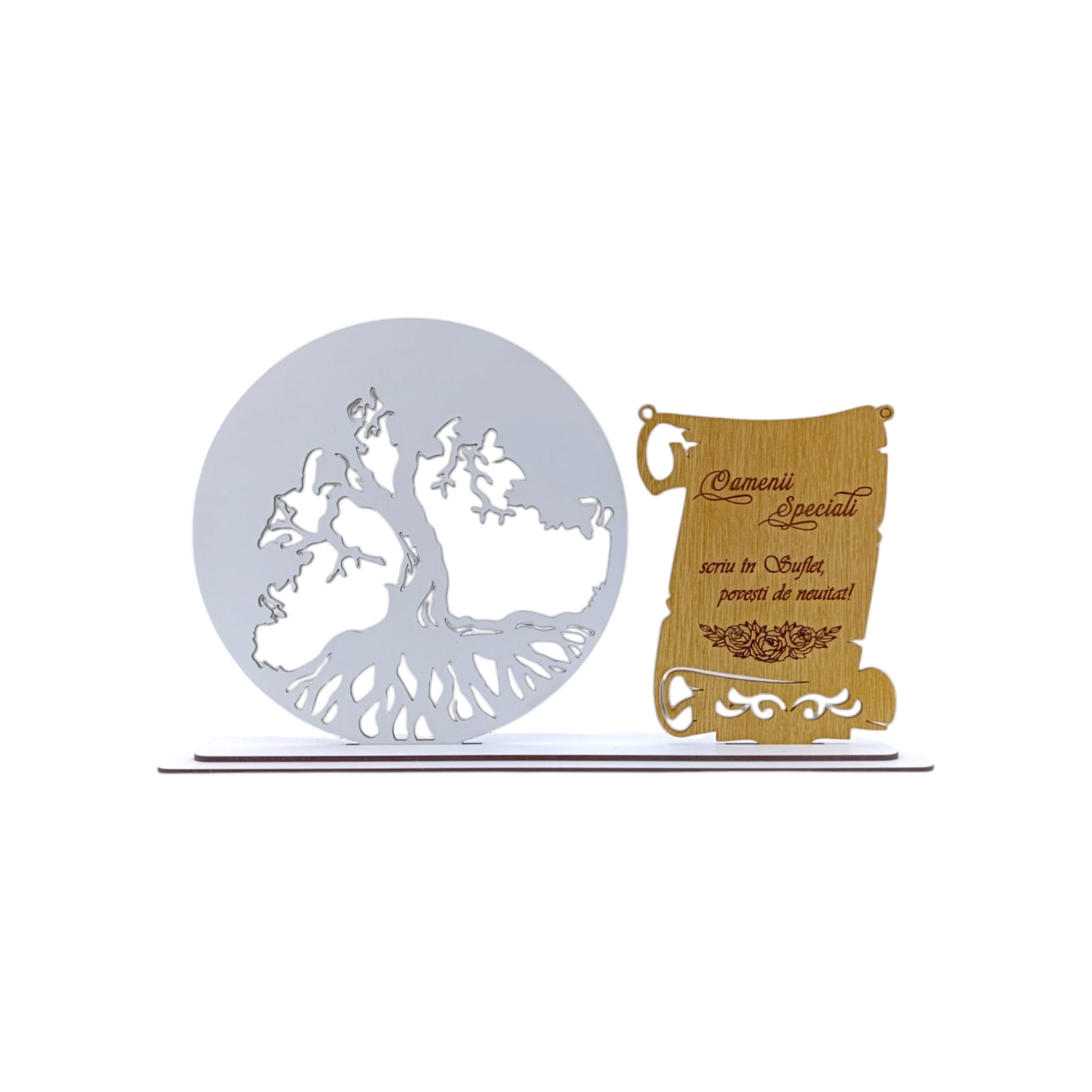 Blank Tablou copacul vietii cu placuta, cadou personalizat cu mesaj standard pentru "Oamenii Speciali", dimensiune 30x18cm, alb