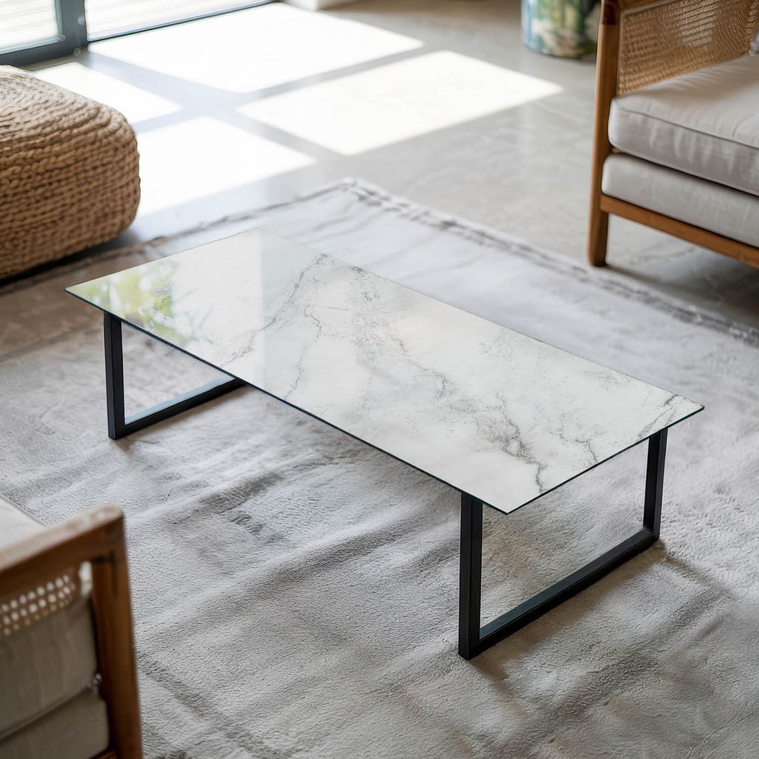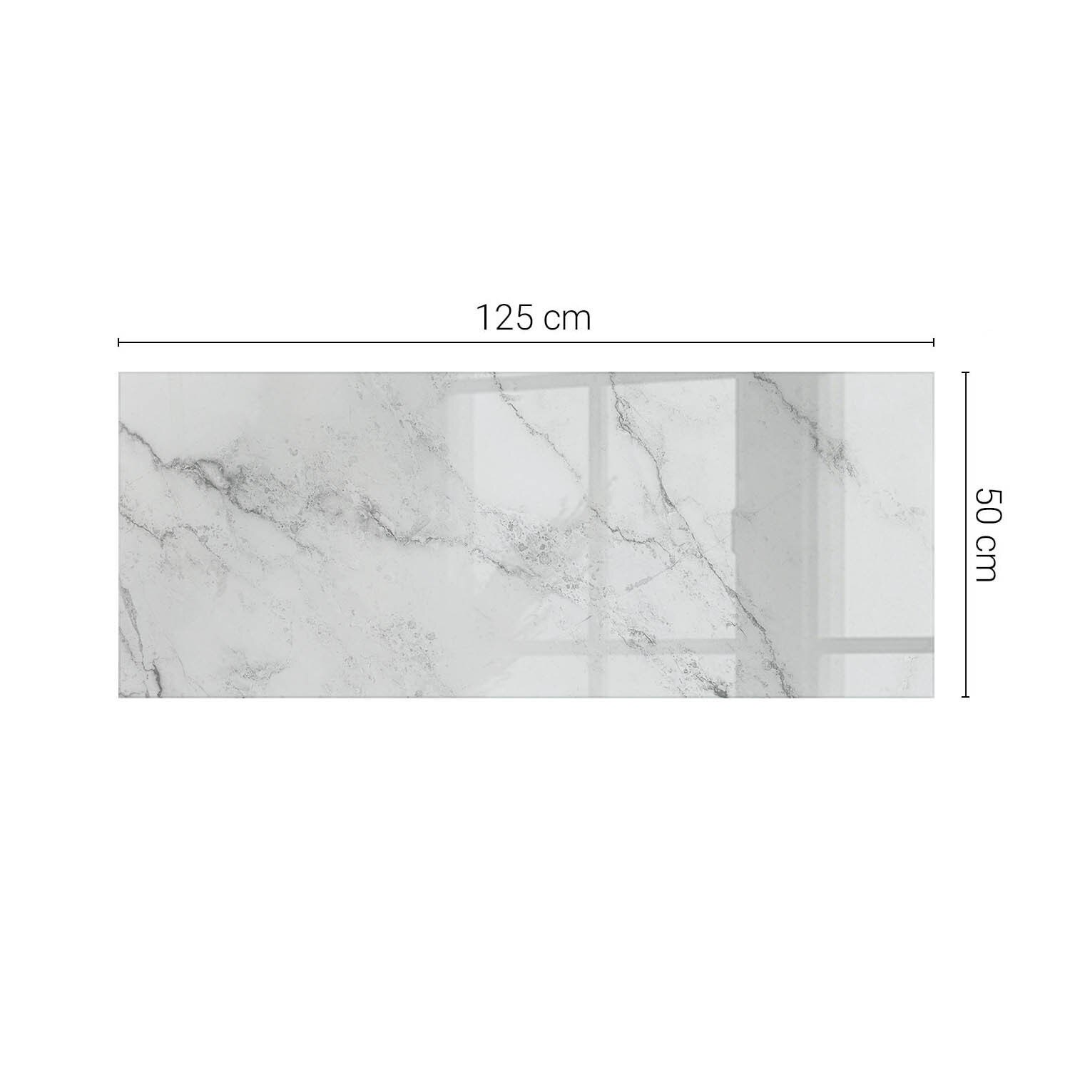 Blat de masa dreptunghi, Tulup, Model de suprafata de marmura, Alb, 125x50 cm, sticla securizata,, 010010820080000007872