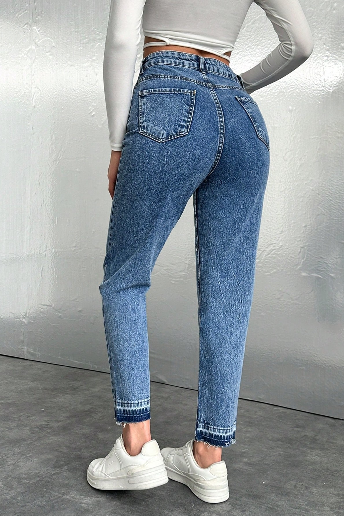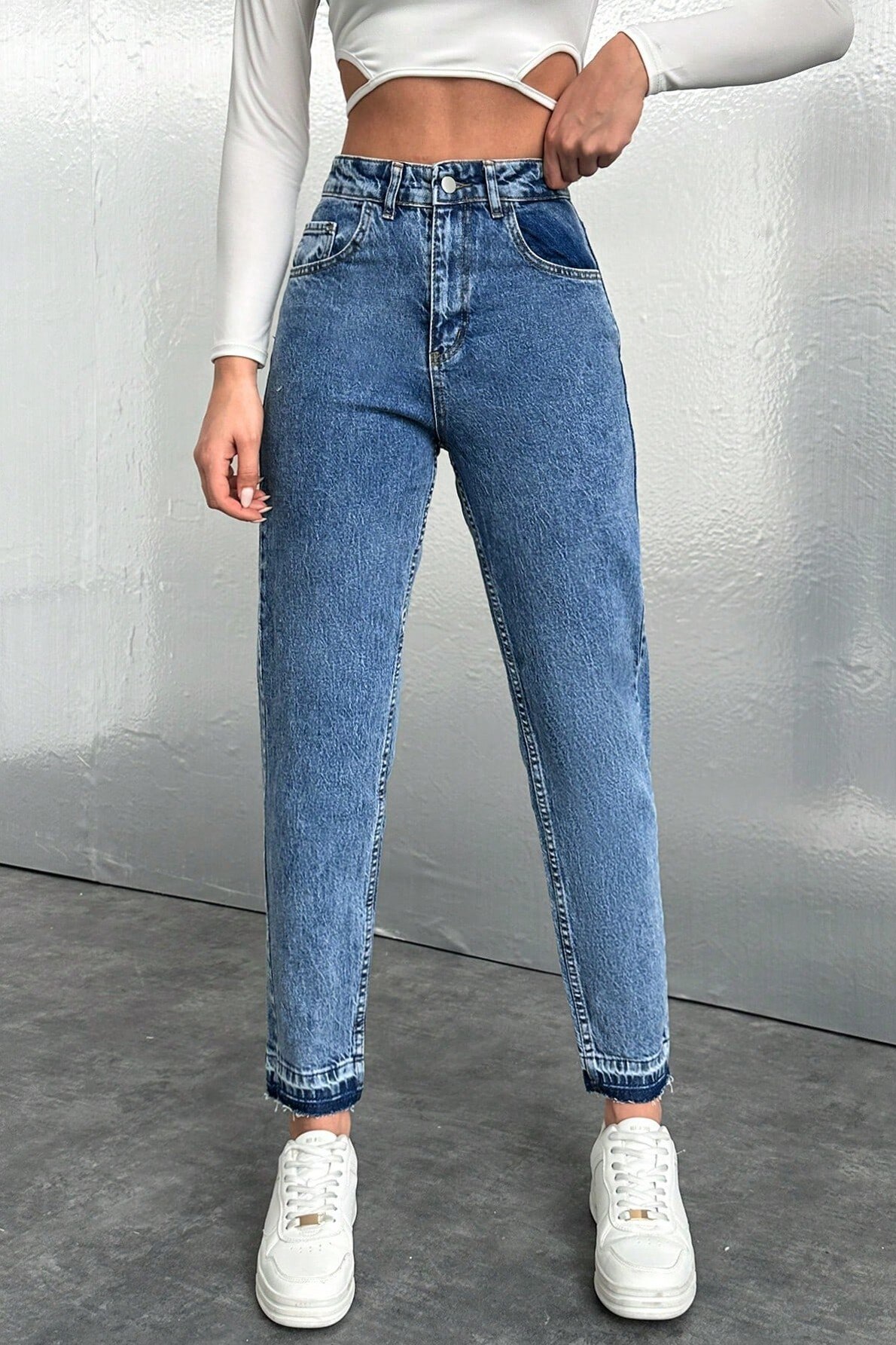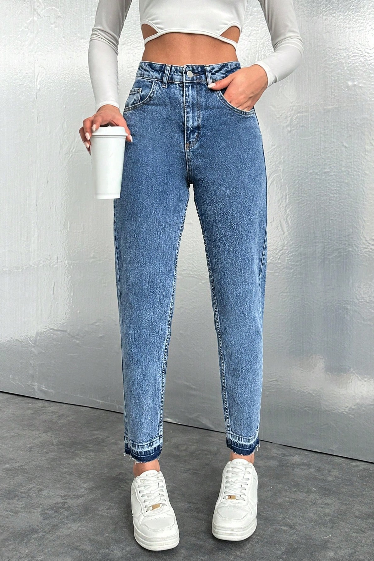 | Detalii | Crop Material denim usor Acest produs se adreseaza femeilor cu forme pline (plus size). Croiala mom slimfit si buzunare practice Material Premium |