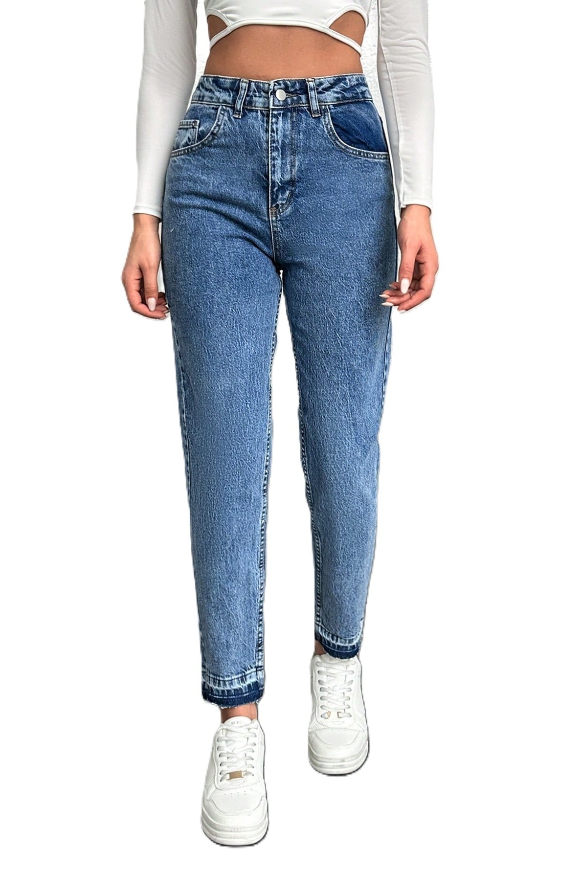 Blugi Dama, Croiala Cropped Mom-Fit Si Culoare Solida, Albastru