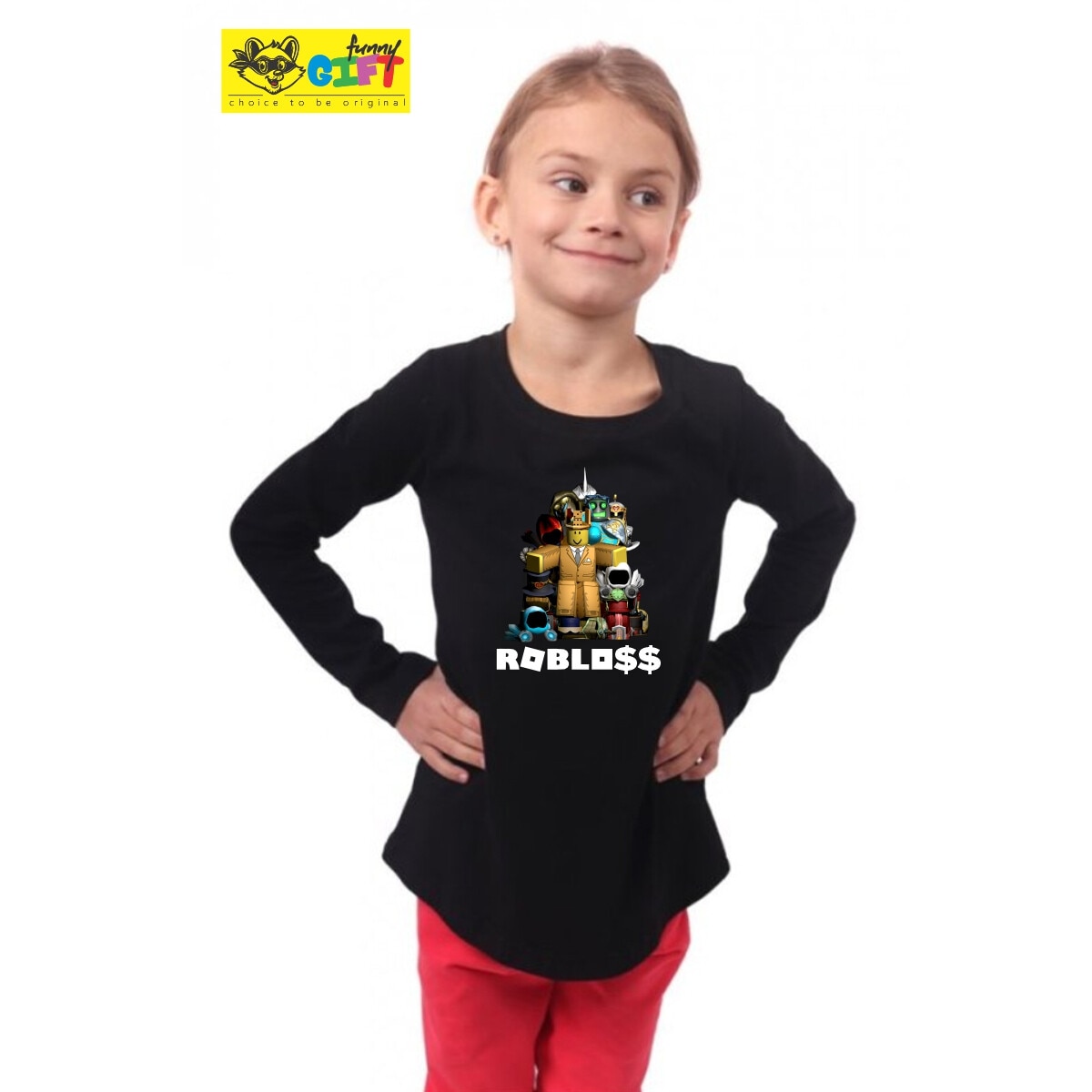 Bluza cu maneca lunga pentru copii, Roblox Robloss, Negru