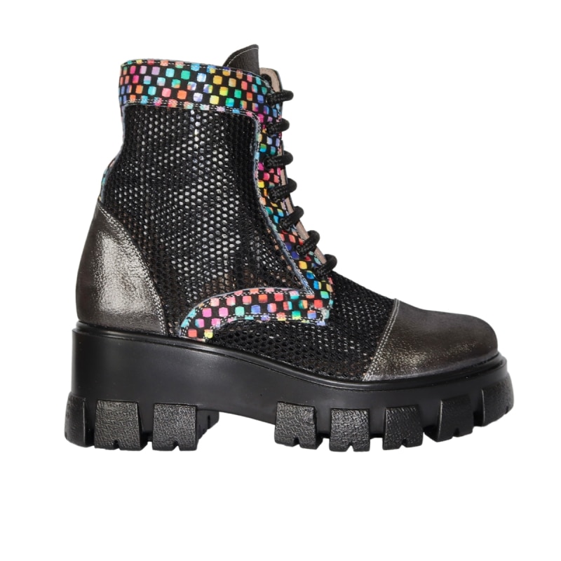 Bocanci Vara Dama Gri Lucios din Piele Naturala, cu Plasa Perforata si Imprimeu Colorat, Platforma Melania, Mateo Shoes, 36 EU