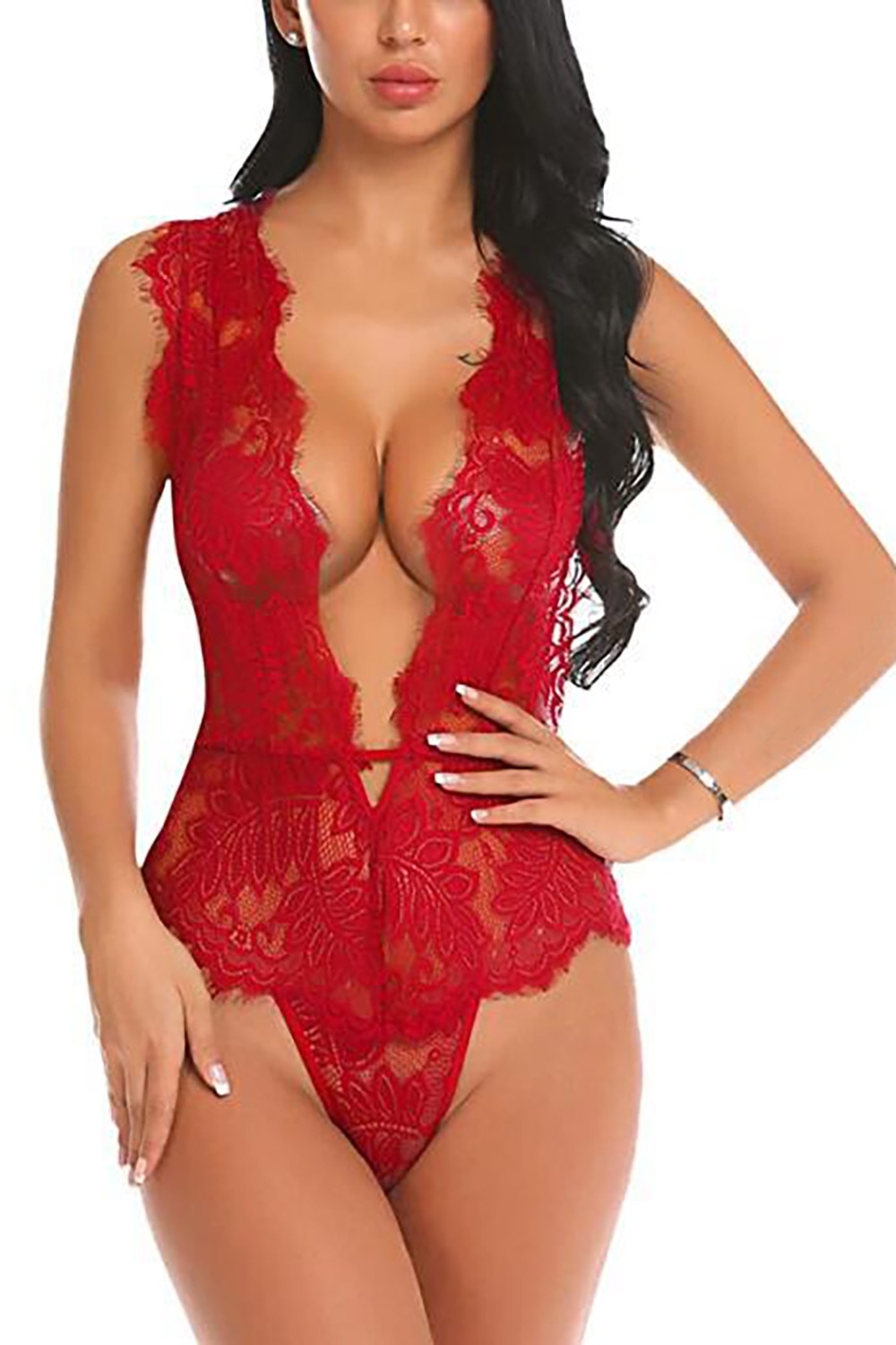 Body din dantela rosie, costume sexy erotice, marime unica, tematica Craciunita