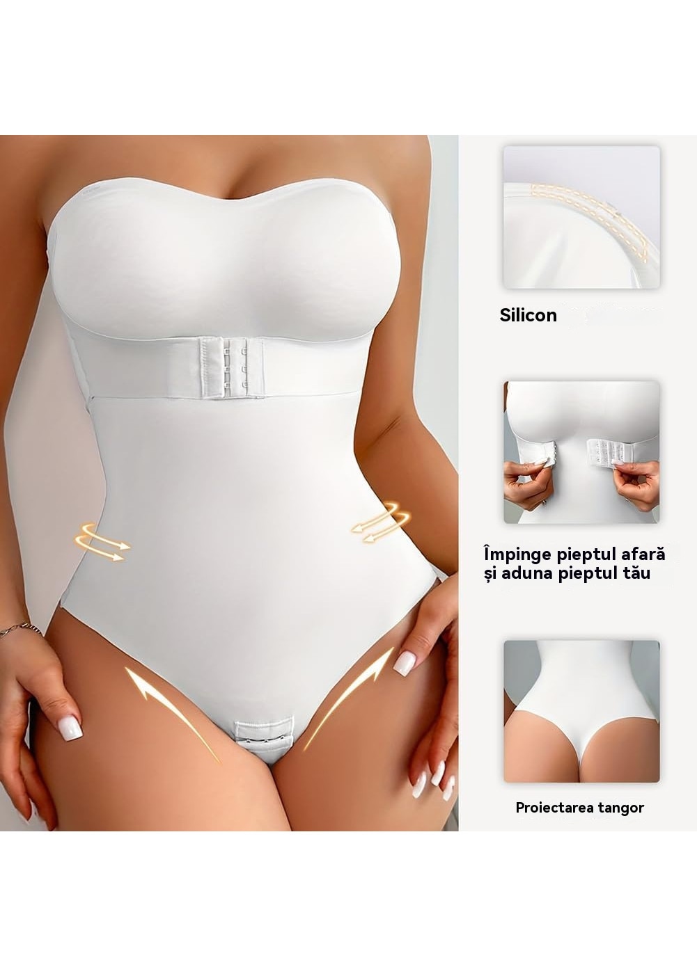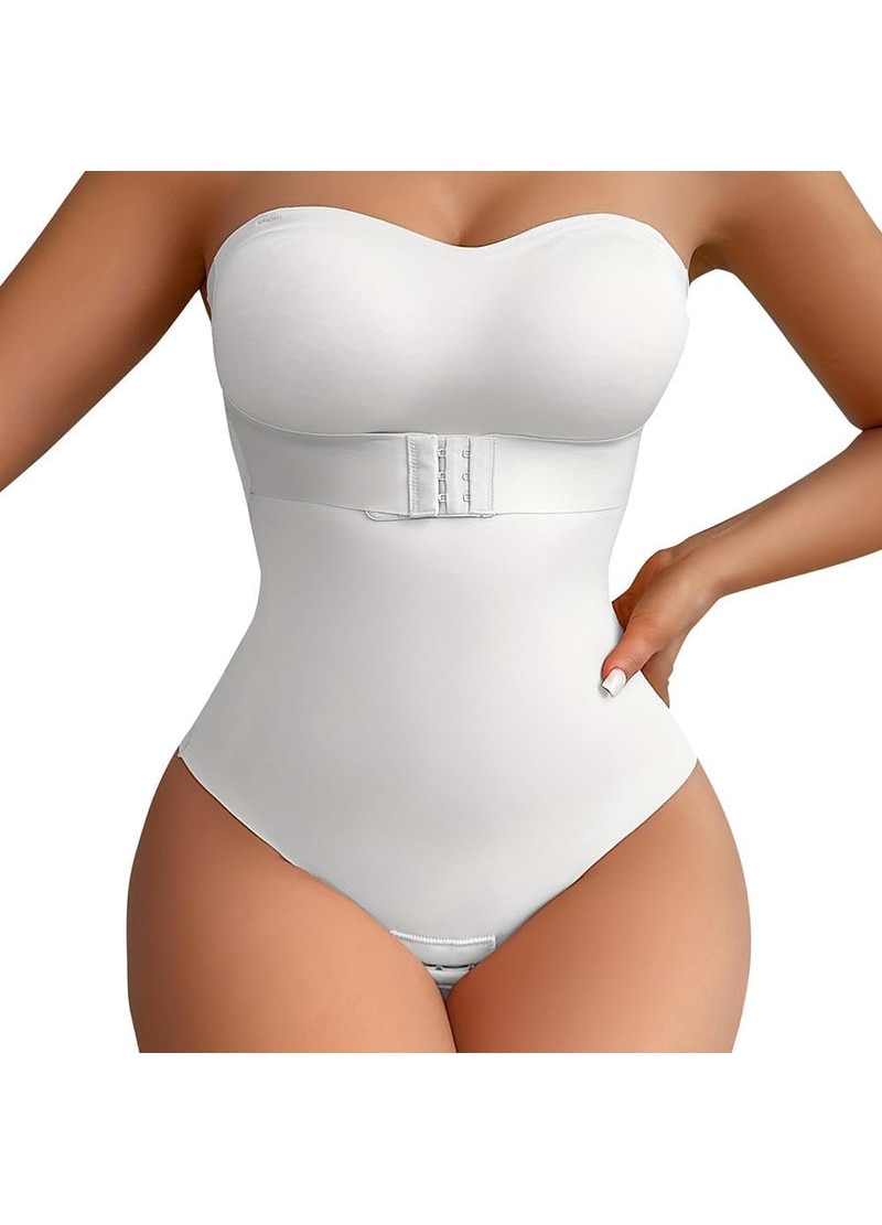 Body Modelator pentru Femei, Corset Slimming din Poliamida/Elastan, Control Taliu & Solduri, Fara Cusaturi, Push-Up Piept, Curea de umar invizibila gratuita, Marime S, Alb