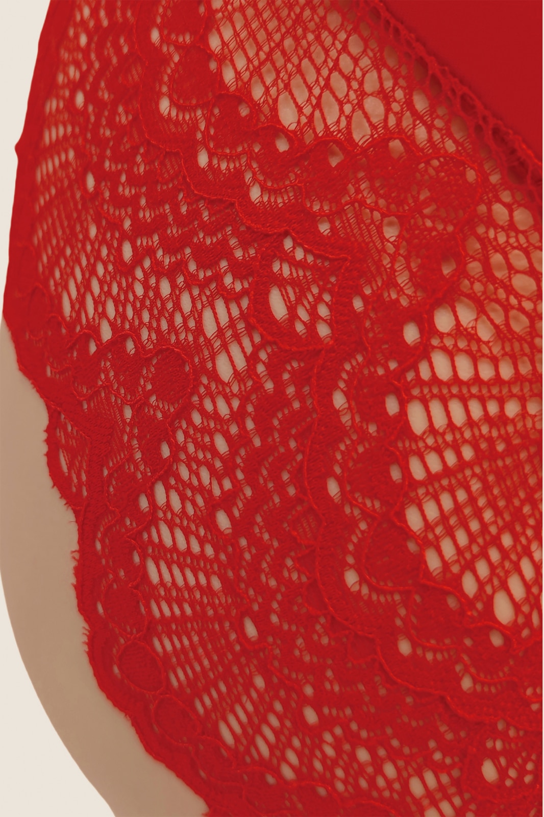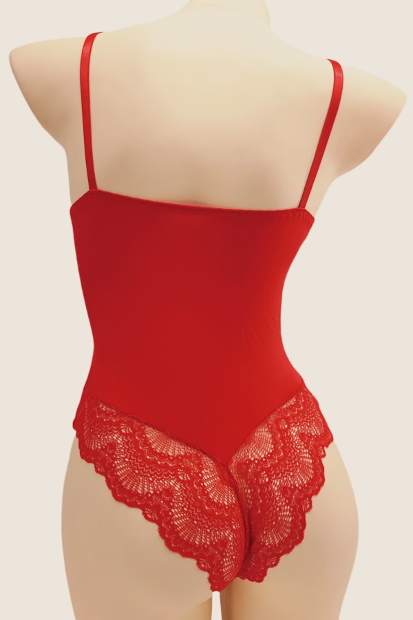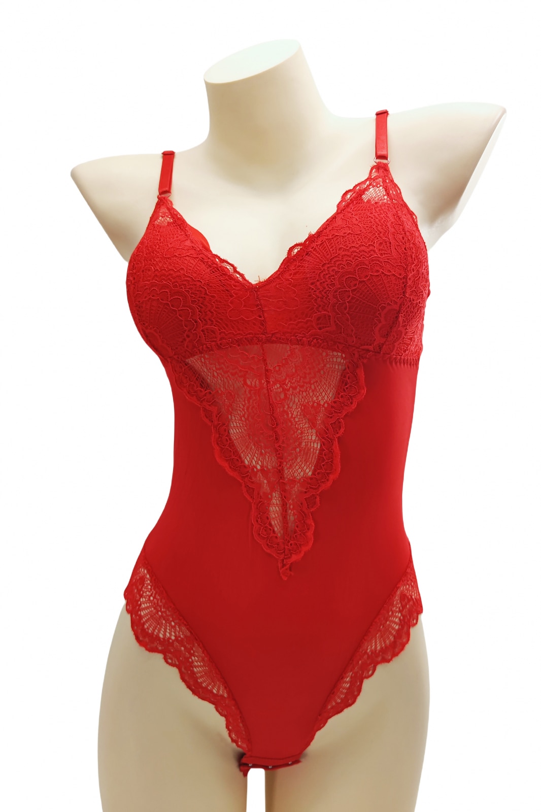 Body sexy cu dantela brodata, bretele subtiri reglabile, BD1547, rosu, 2XL-3XL