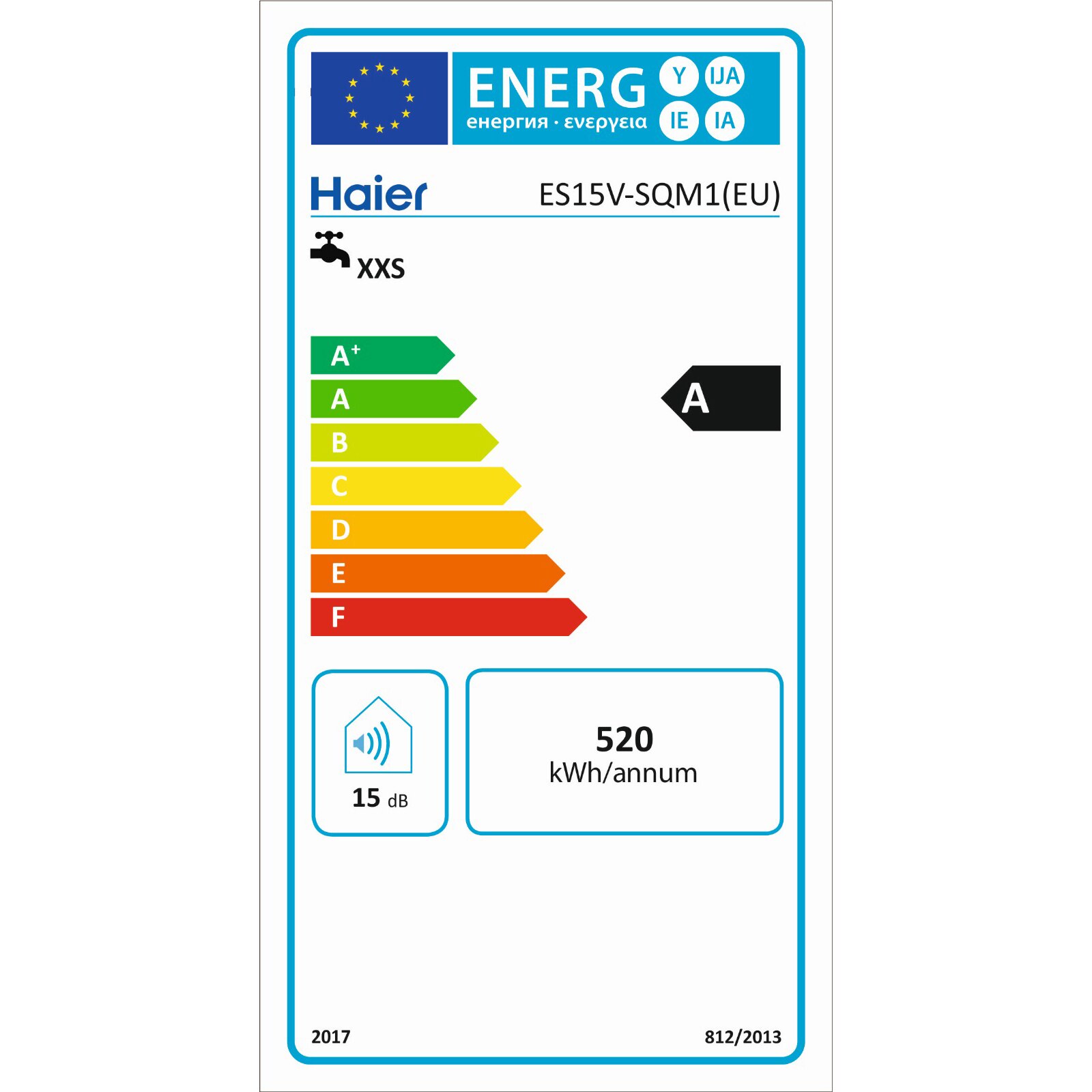 Boiler electric Haier ES15V-SQM1(EU), 15 litri, 1500W, 7.5 Bar, IPX4, Clasa energetica A