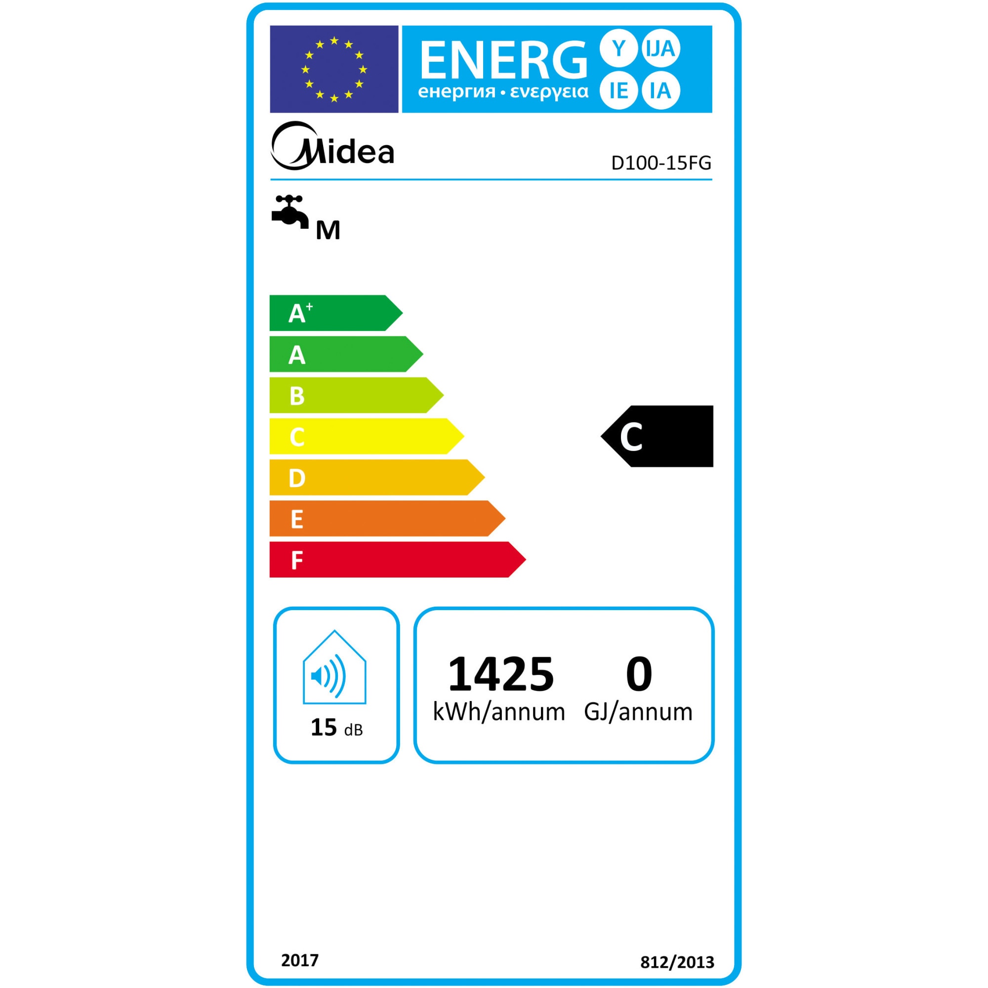 Boiler electric Midea D100-15FG, Cilindric, 100l, 1500W, indicator temperatura, rezervor emailat, montaj vertical