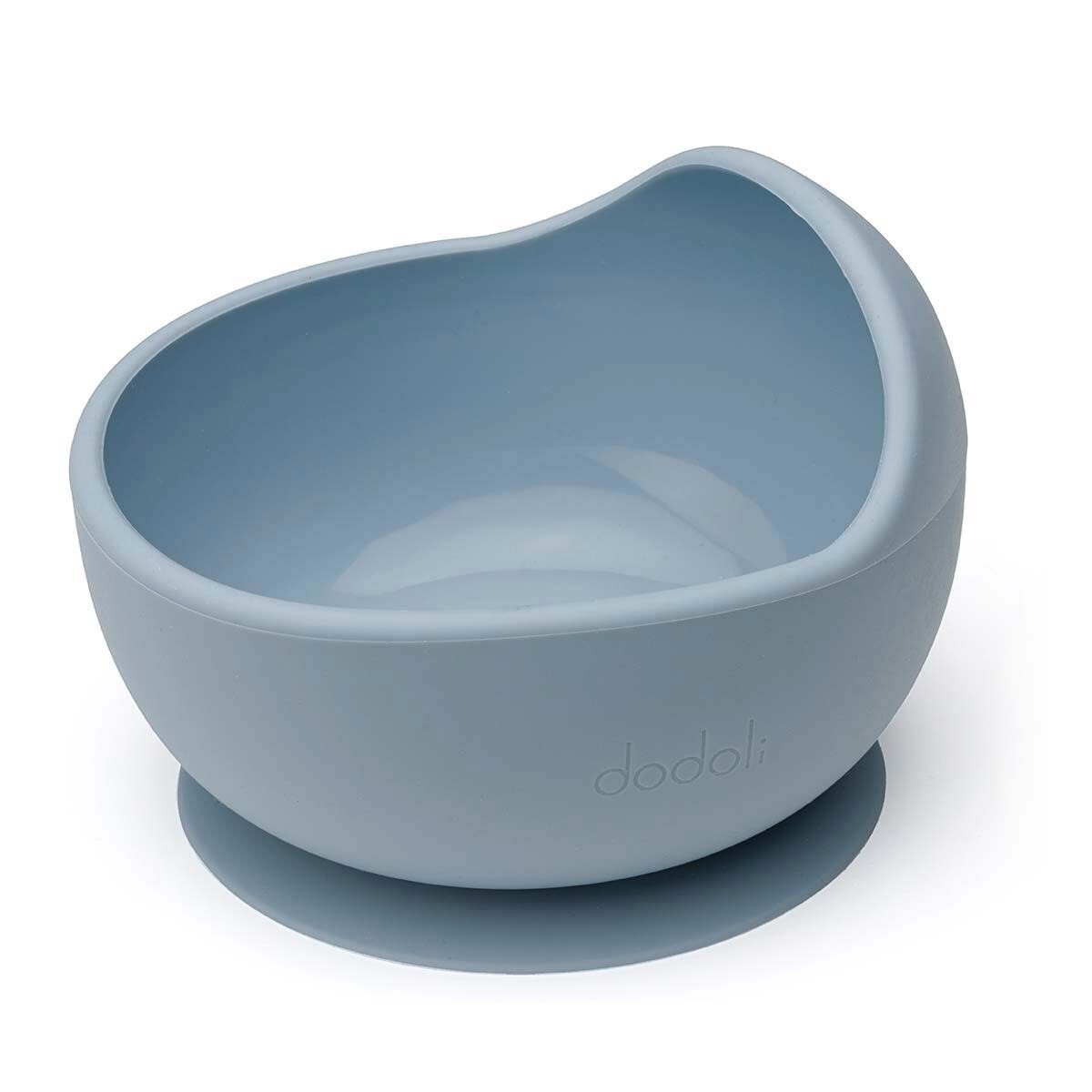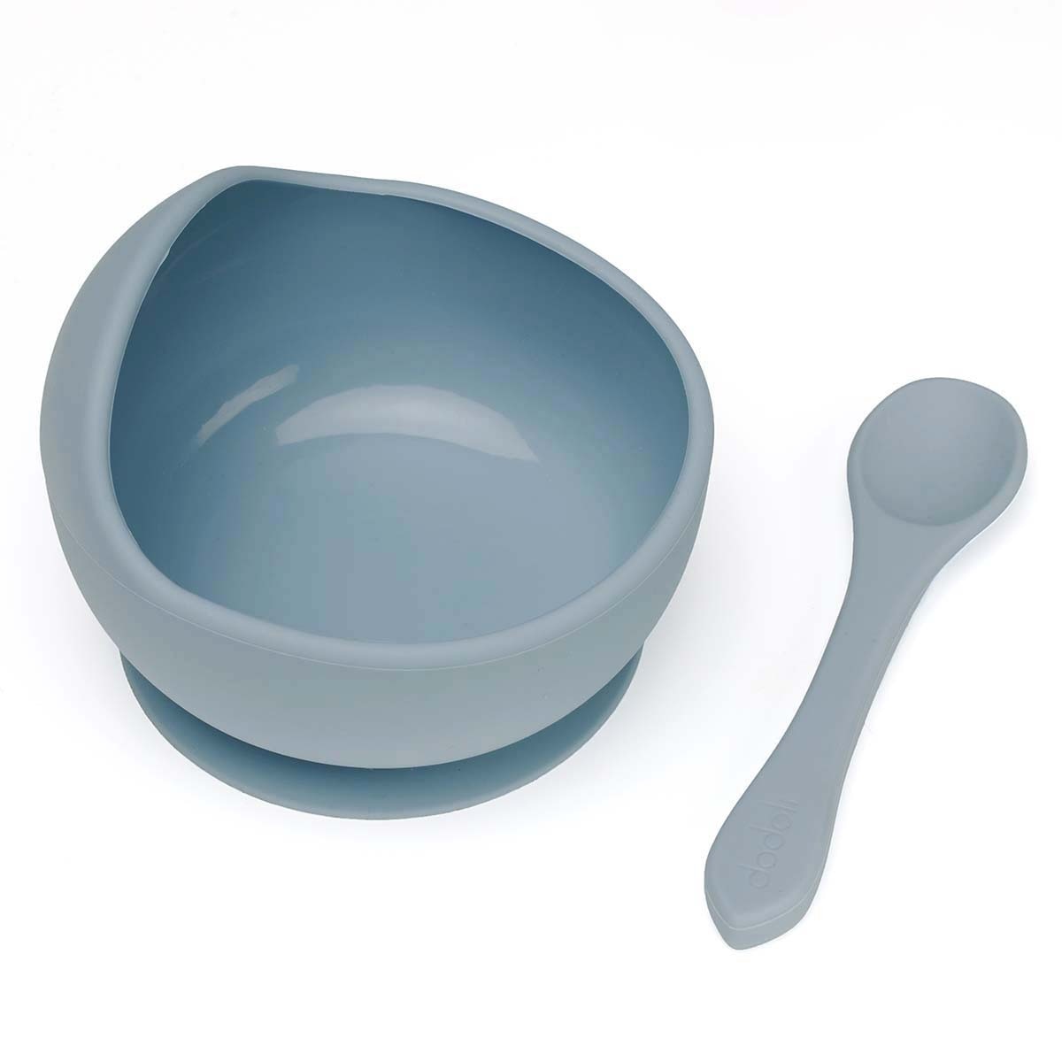Bol antiderapant Dodoli din silicon cu ventuza si lingurita pentru bebelusi, Seablue