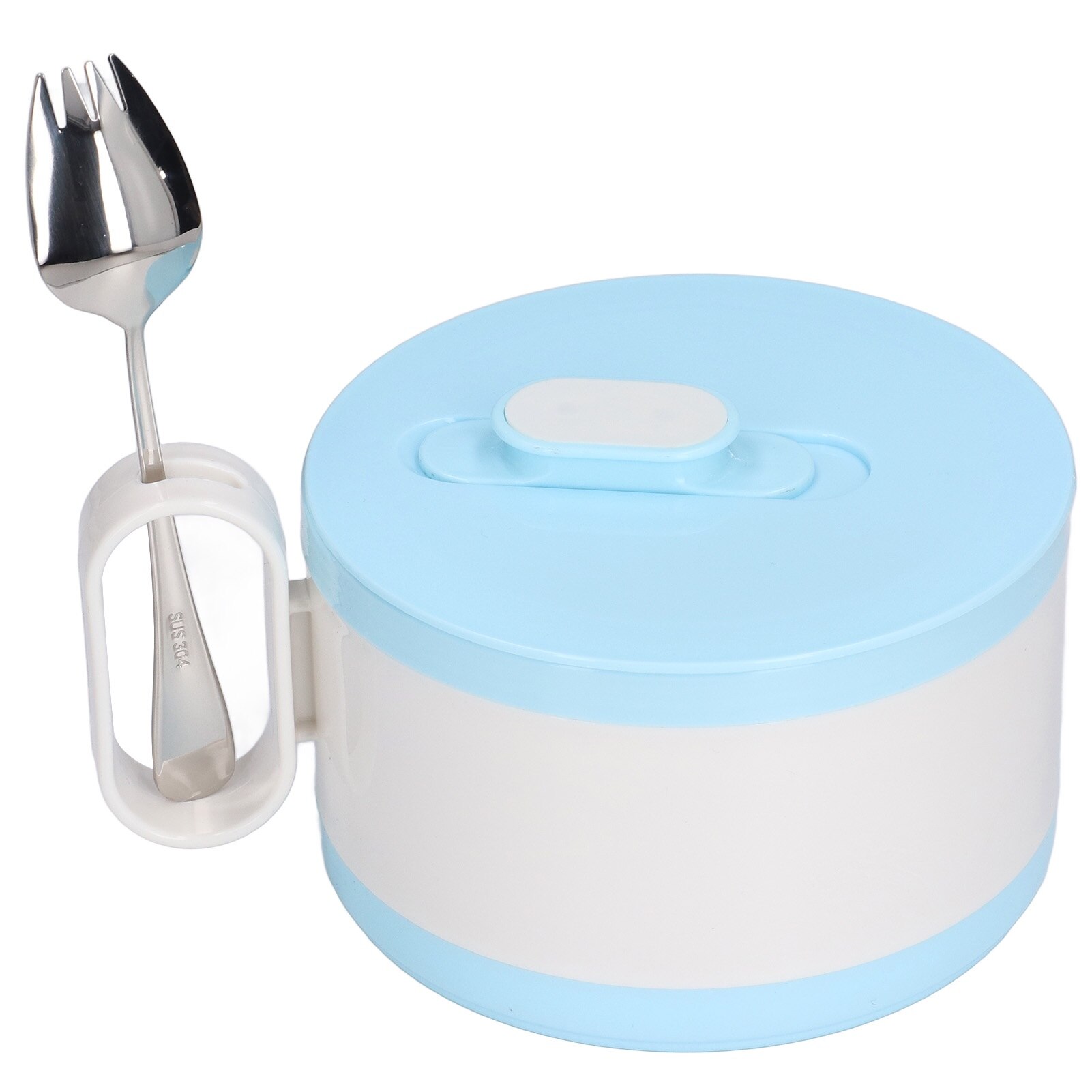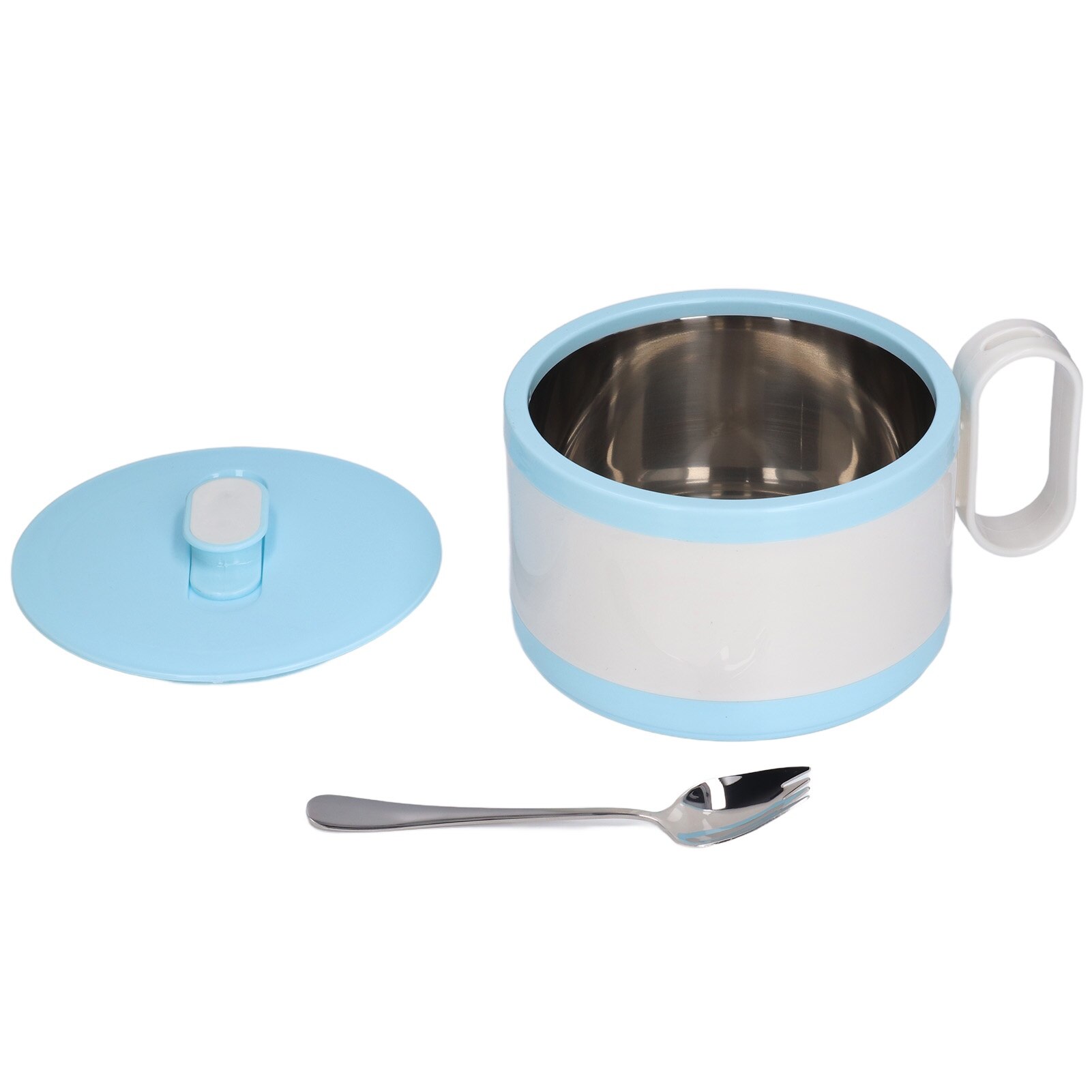 Bol din otel inoxidabil Jormftte, set cu capac, pentru ramen, izolatie dubla, albastru, 30x15cm