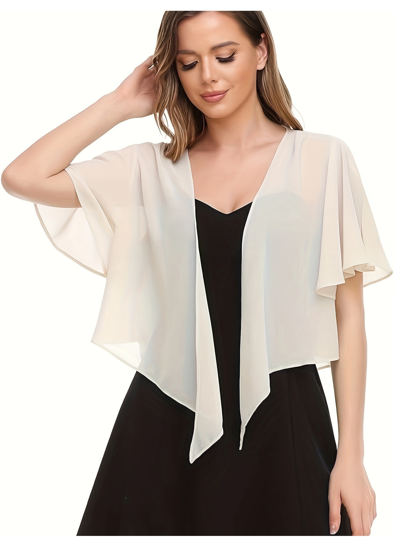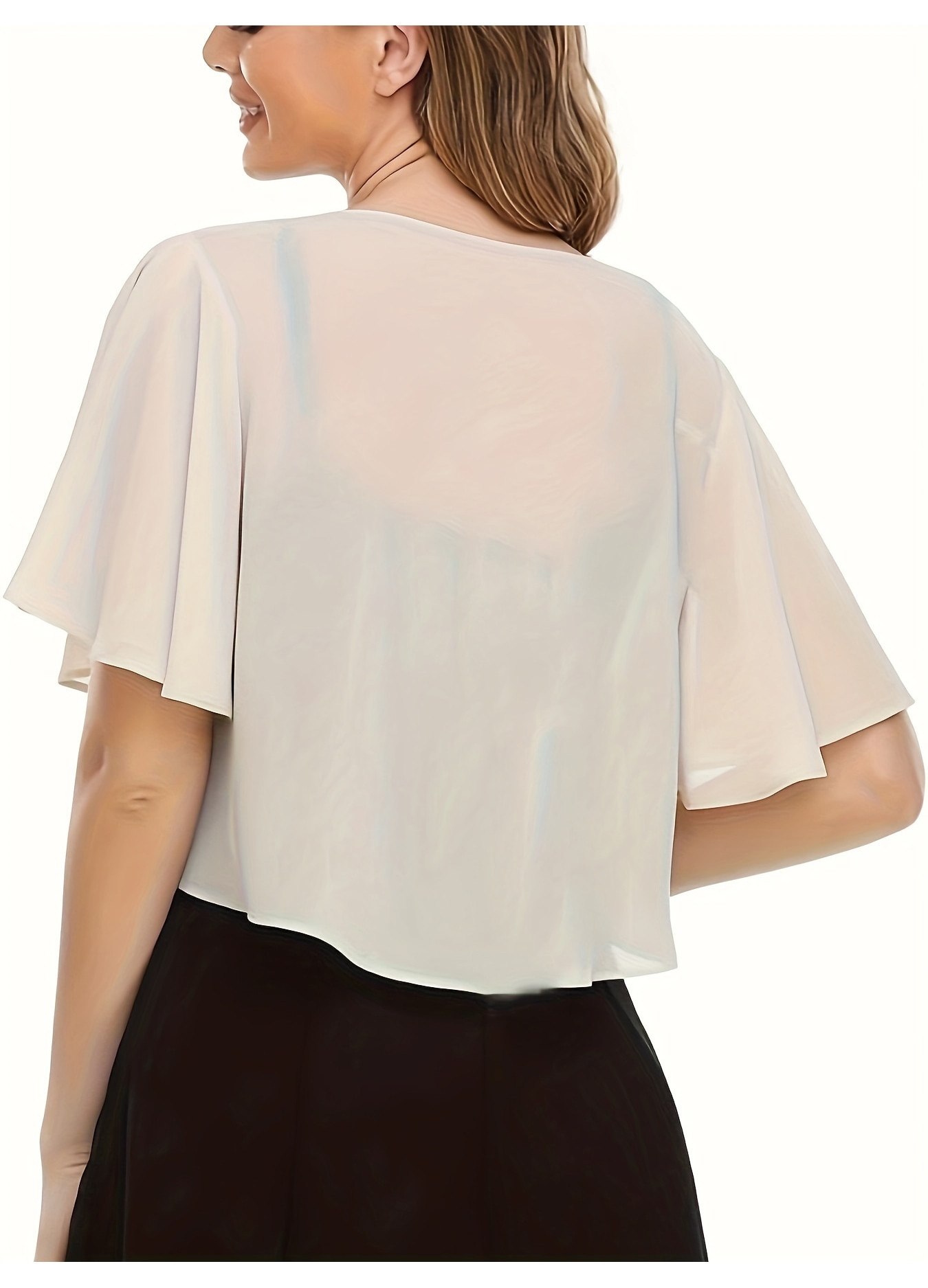 Bolero elegant office, material vaporos, respirabil, legare in fata, culoare crem, marime S