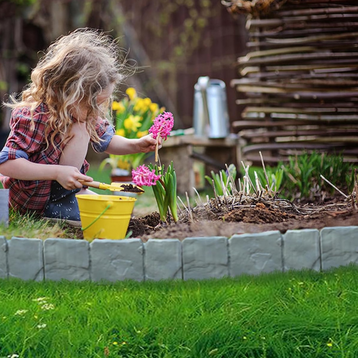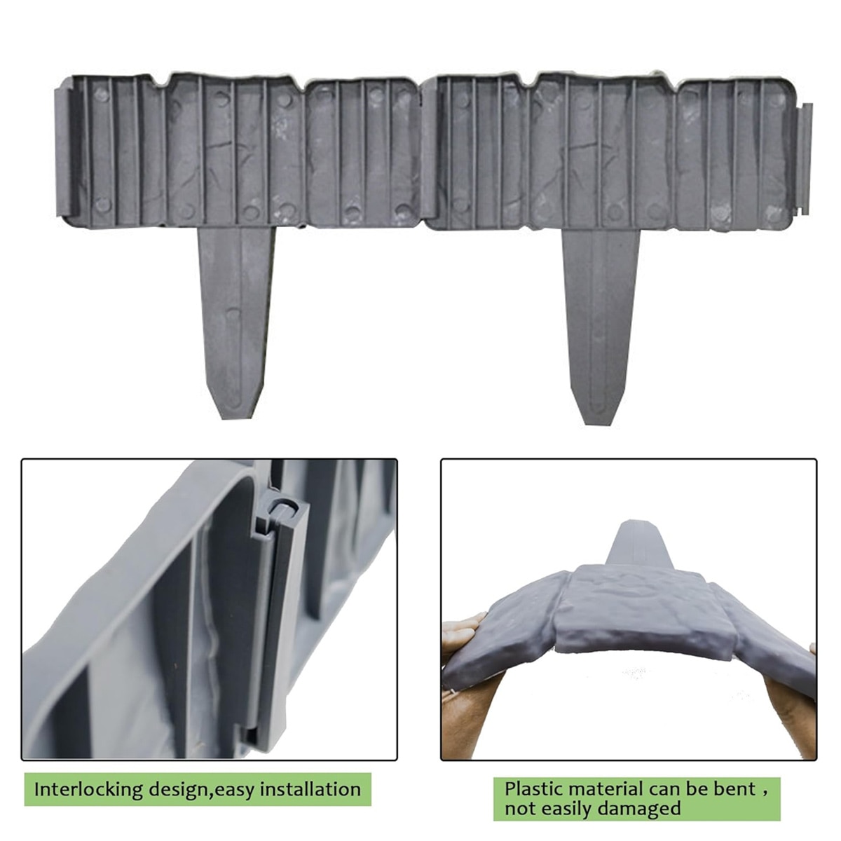 Borduri peisagistice pentru gradina, lungime personalizata a marginii, margine de gazon interconectata pentru terasa in aer liber, balcon, curte, 10 bucati, polipropilena durabila, material rezistent la intemperii pentru marginea gradinii