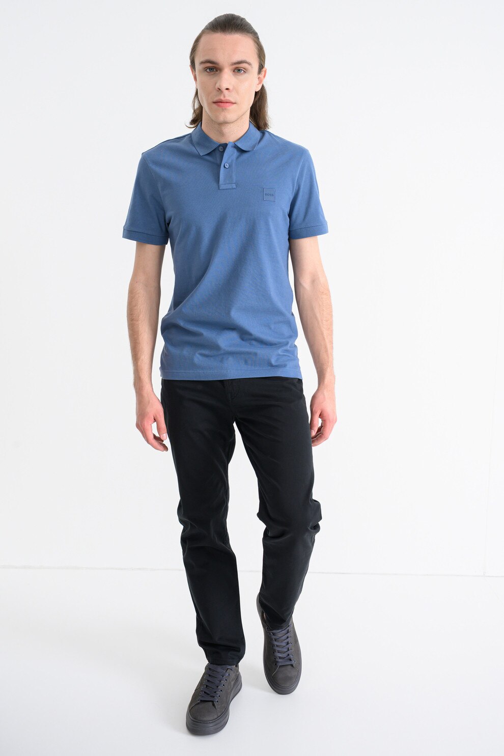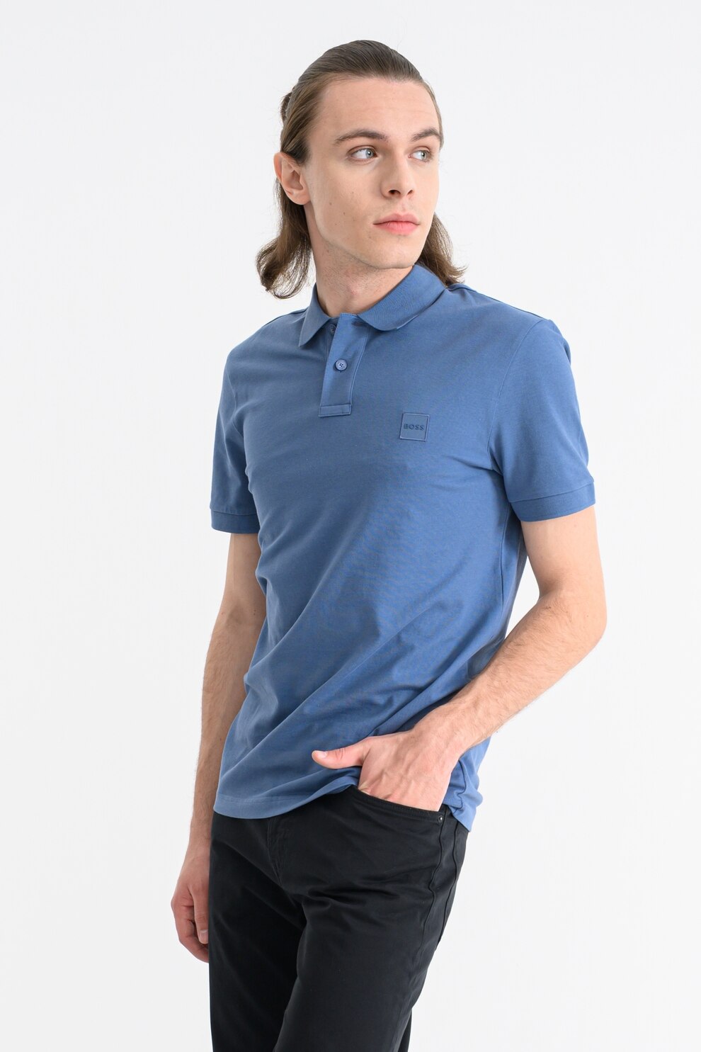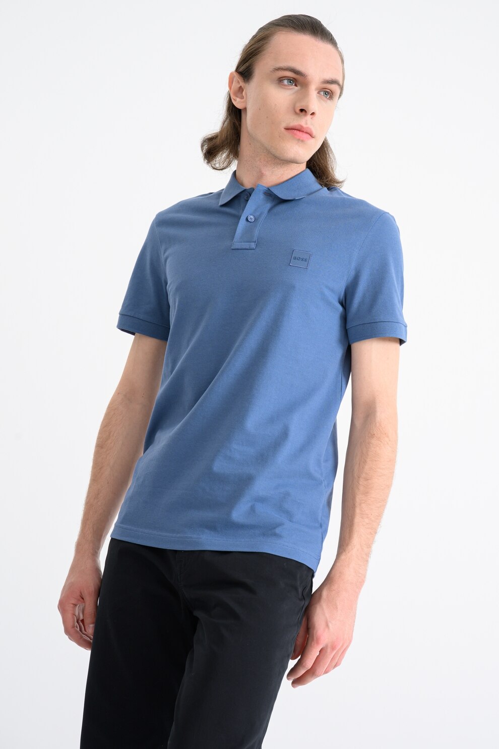BOSS - Tricou polo slim fit Passenger, Albastru prafuit/Albastru