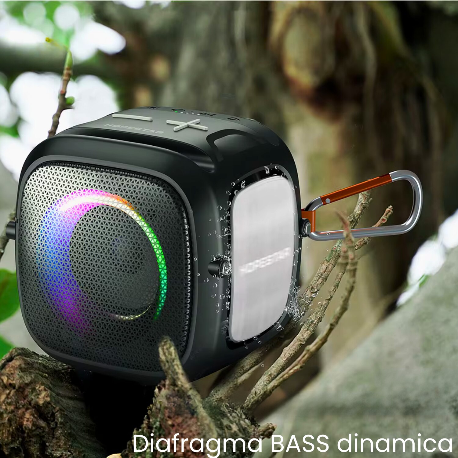 Boxa portabila, Bluetooth 5.1, Wireless Radio FM, card MicroSD, Stick de memorie si cablu AUX, Rezistenta la apa si praf, Factor IP5X, Autonomie pana la 10h, Capacitate acumulator 2400 mAh, Negru