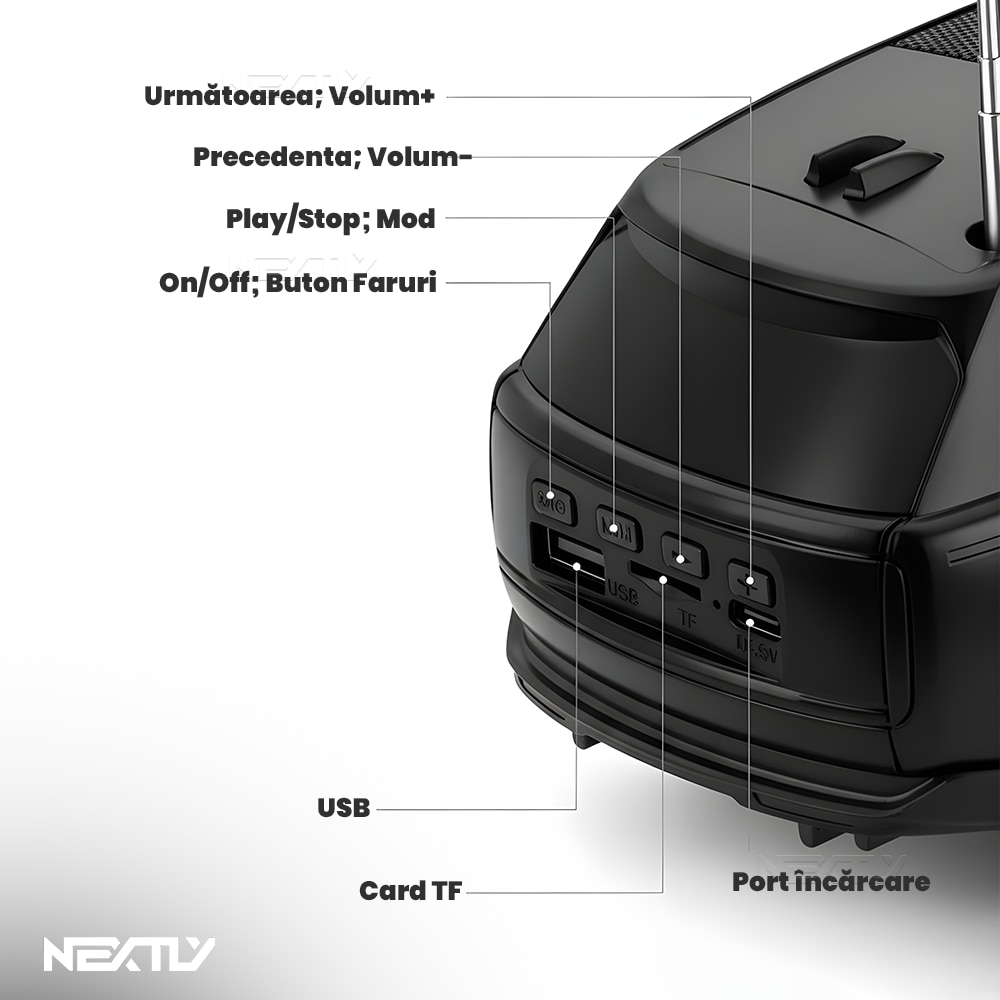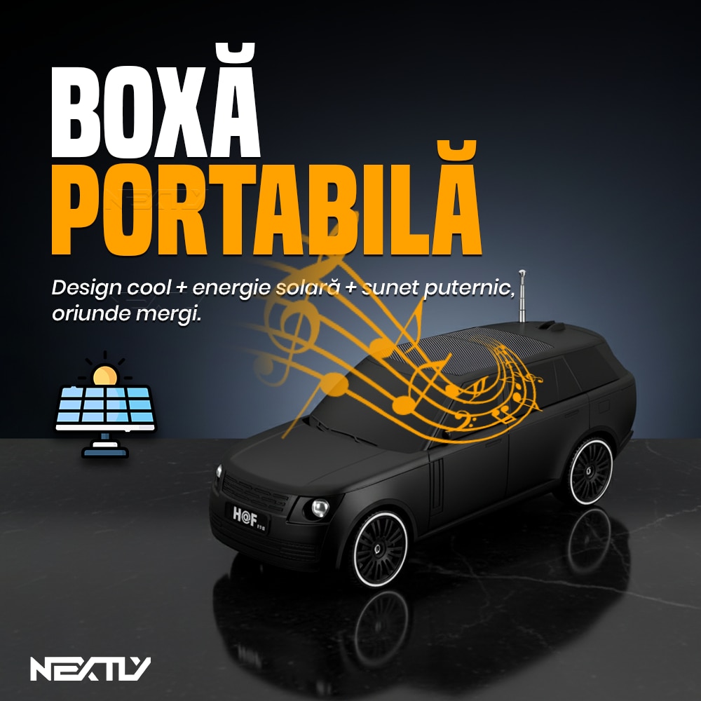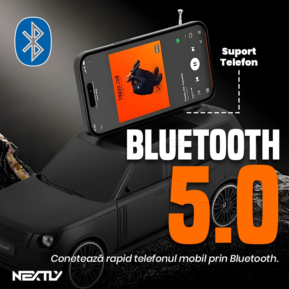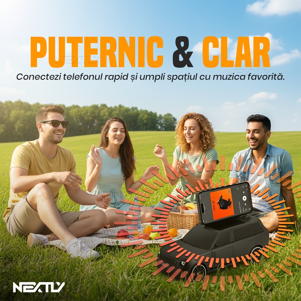 Boxa portabilă Bluetooth, NEXTLY, design mașină, sunet puternic, verde, 26x10x10cm