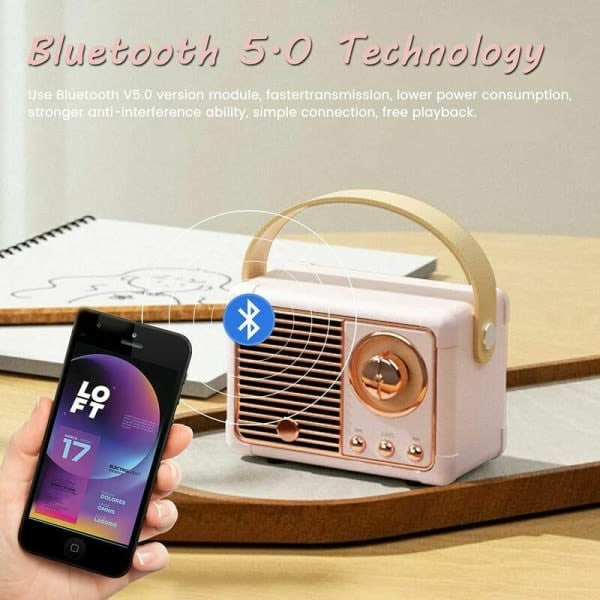 Boxa portabila retro, radio FM vintage, volum ridicat, conexiune wireless Bluetooth 5.0, culoare verde