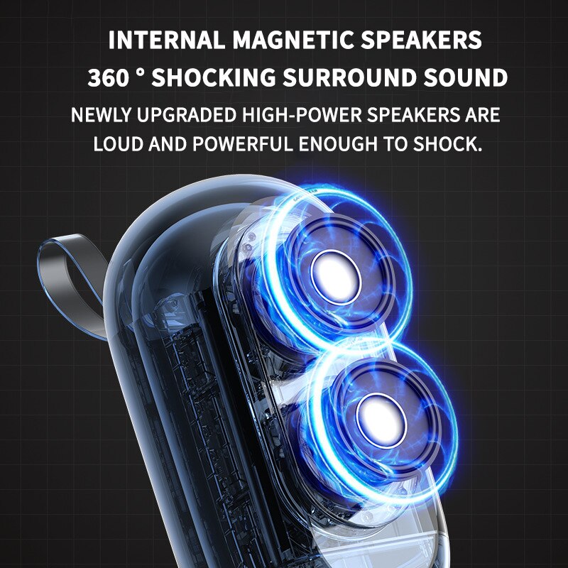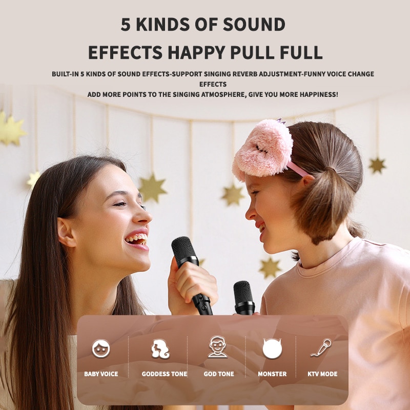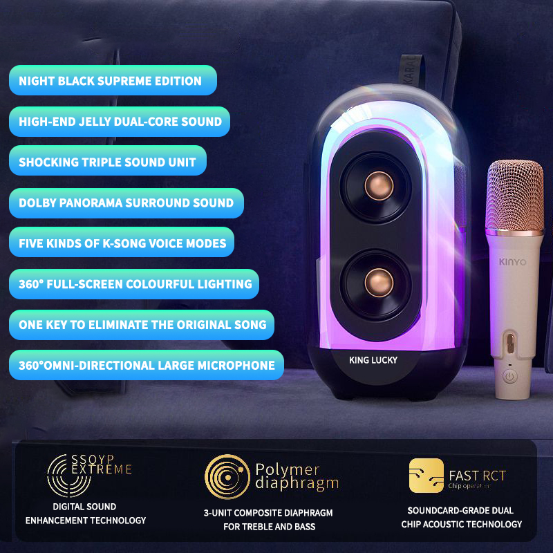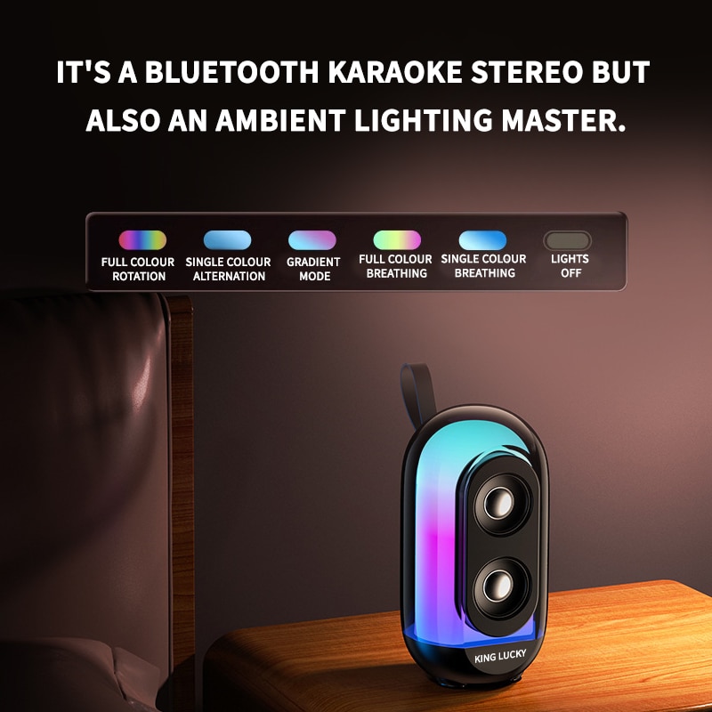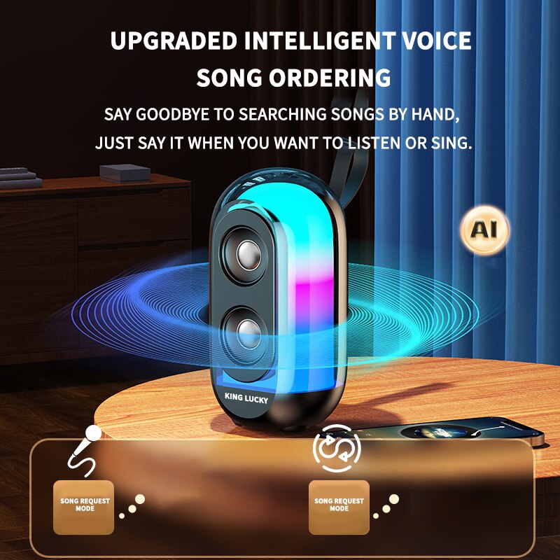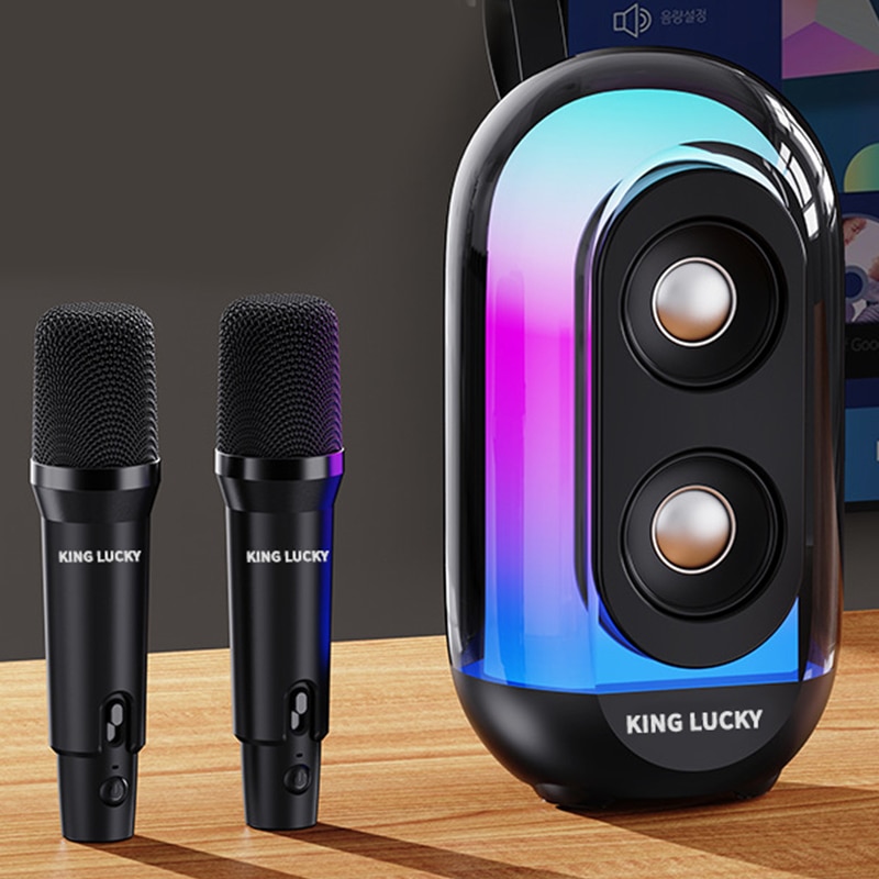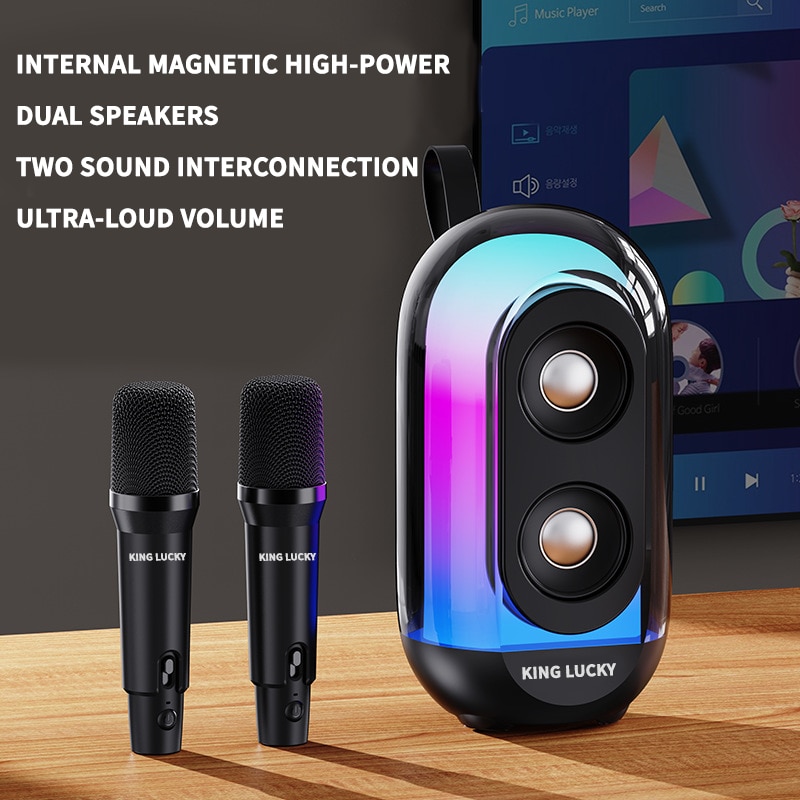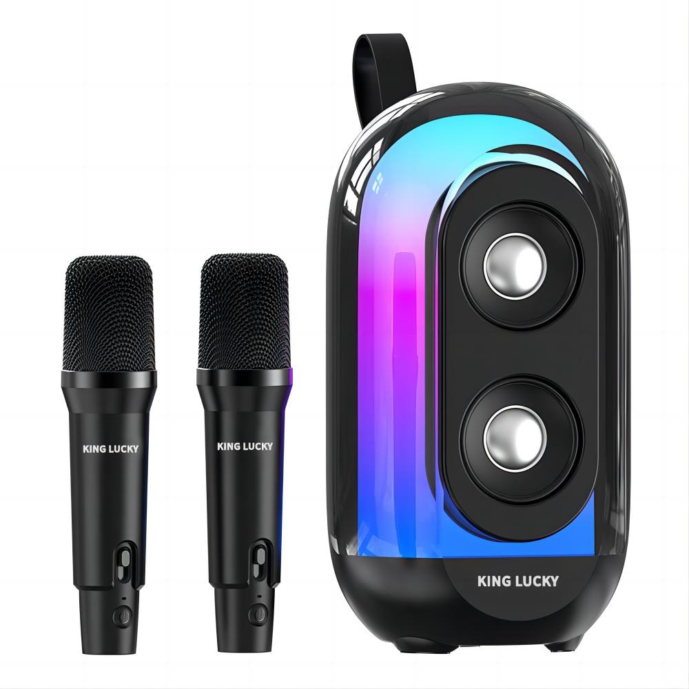 Boxa portabila/set 2 microfon, King Lucky®Boombox 360°, lumini orbitoare pe ecran complet, mod KTV, Bluetooth 5.1, capacitate baterie 3600mAh, negru