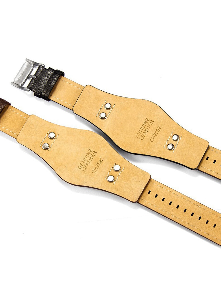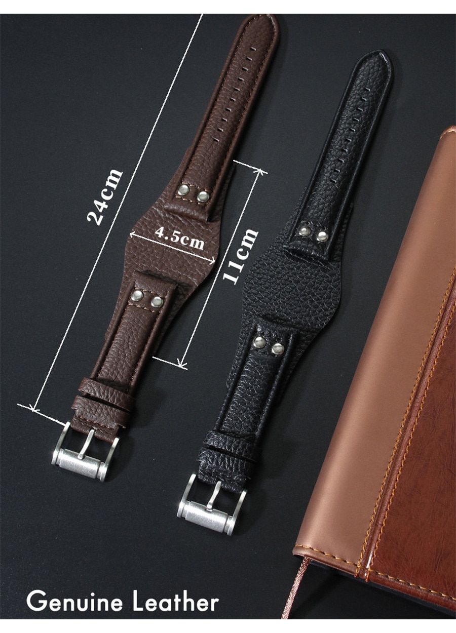Bratara ceas, AjieQaQ, piele naturala, Curea ceas, compatibila ceas Fossil CH2891 CH2564 CH2565 CH2573 CH2574 si alte modele, Vine cu un instrument si 3 bare de arc, 22mm, negru
