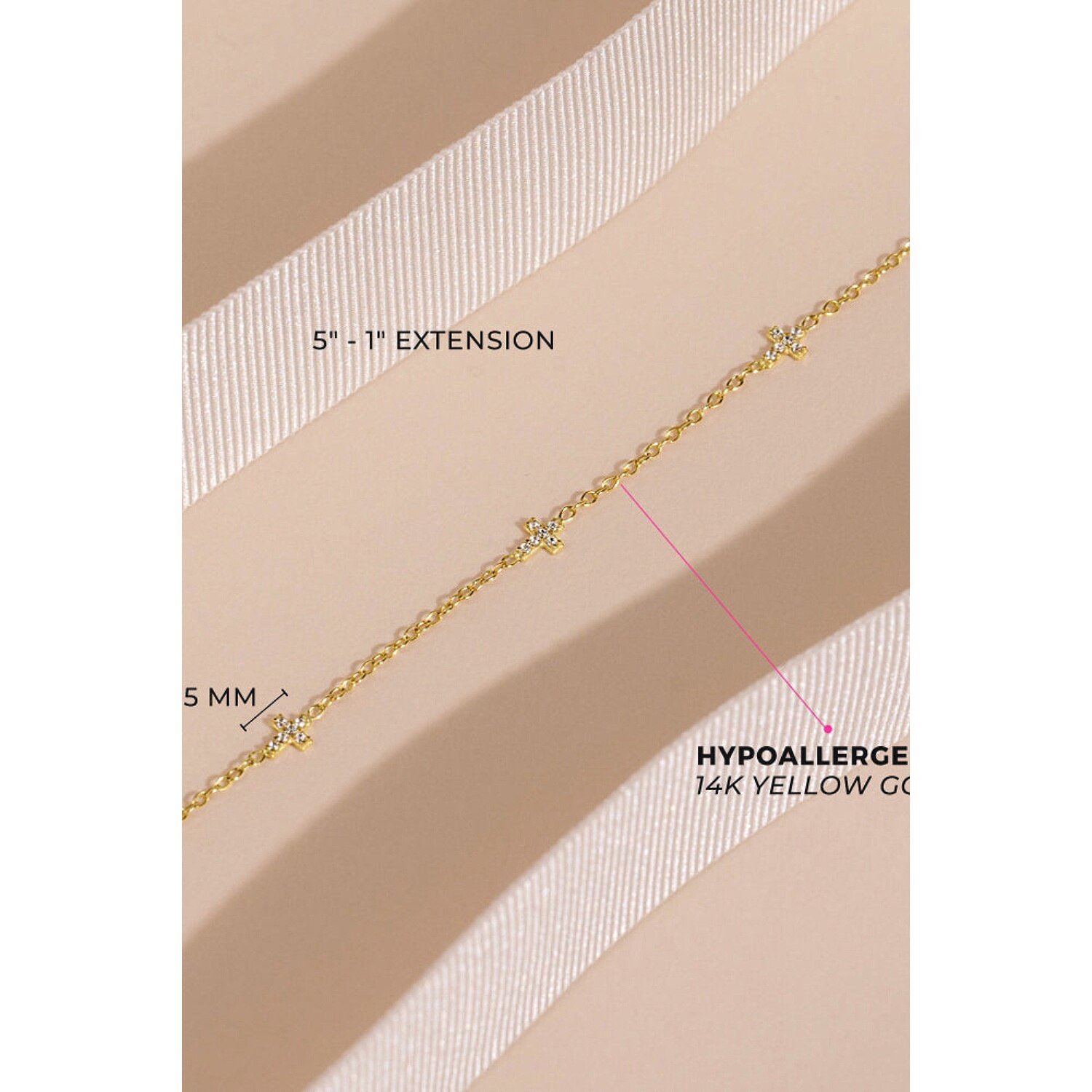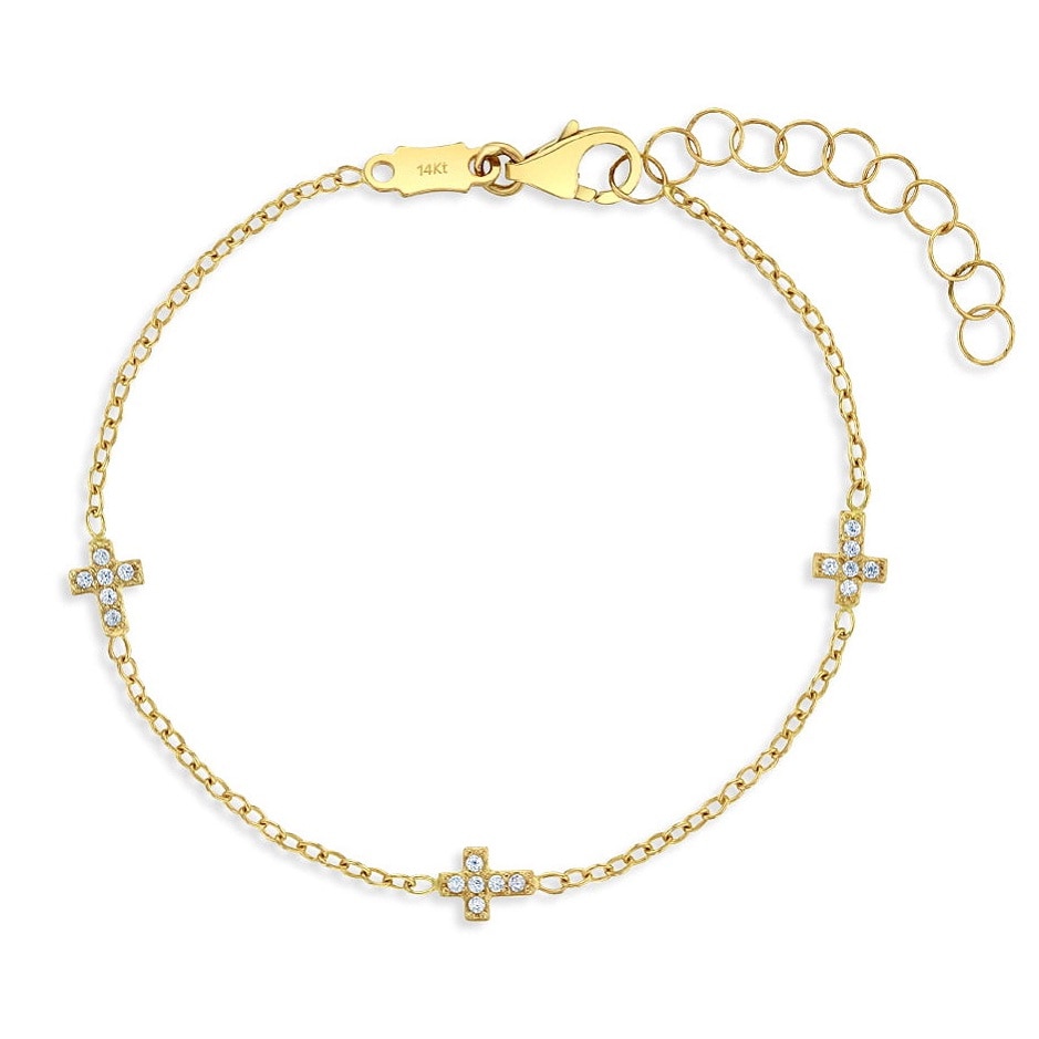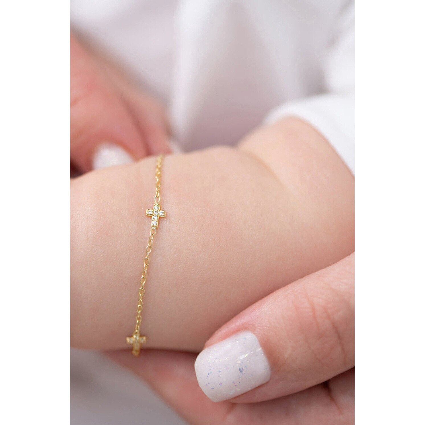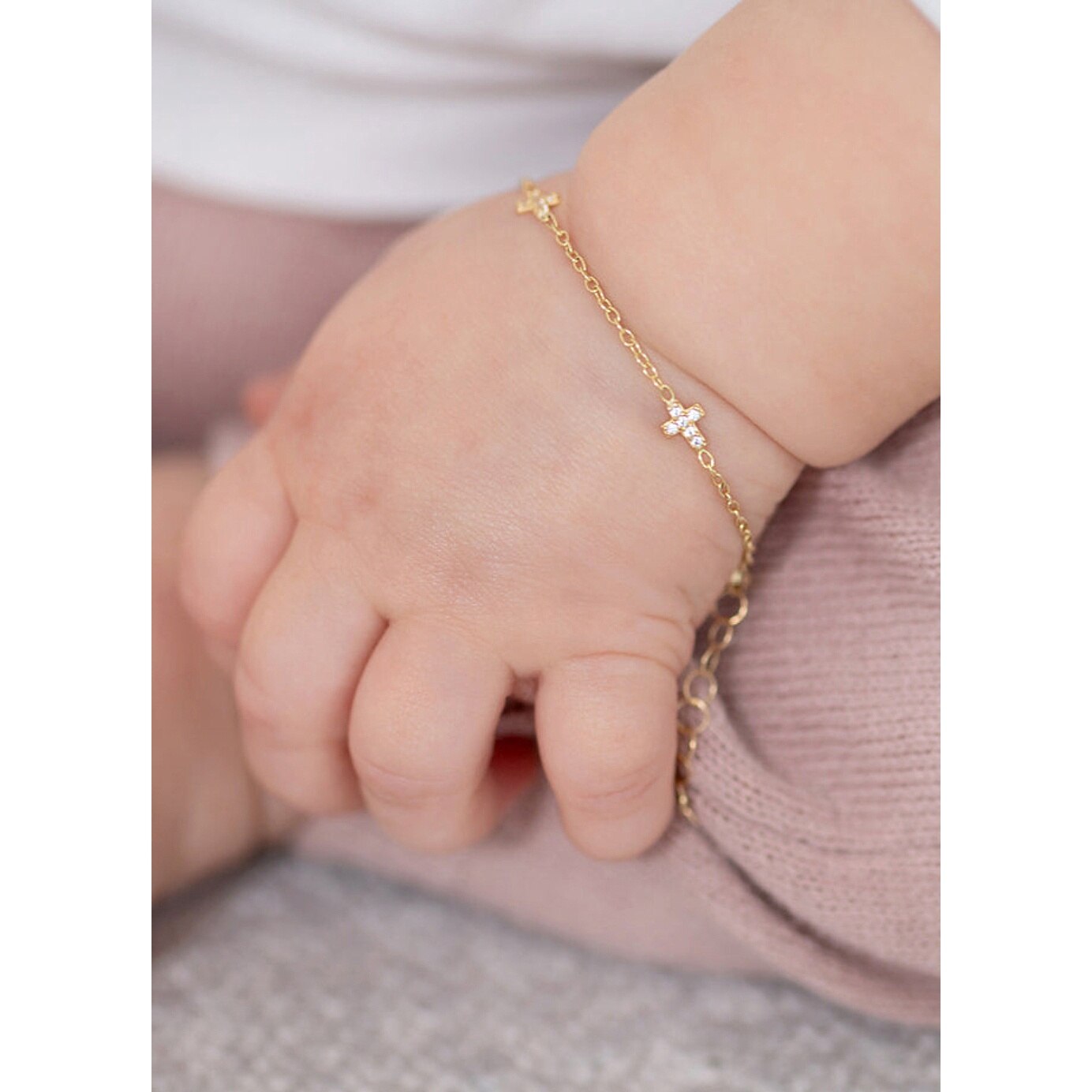 Bratara din Aur 14K pentru Bebelusi si Copii, cu cruciulite delicate si pietre zirconia, ajustabila 13–15 cm
