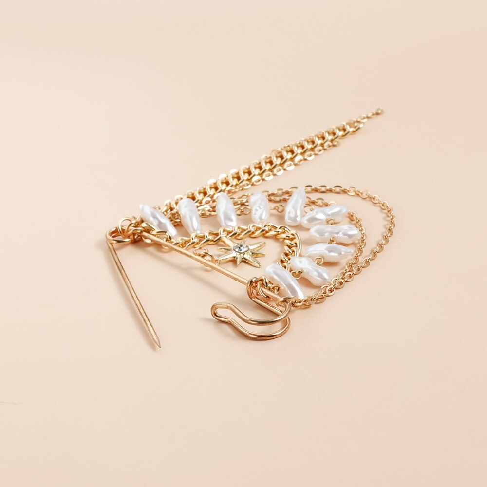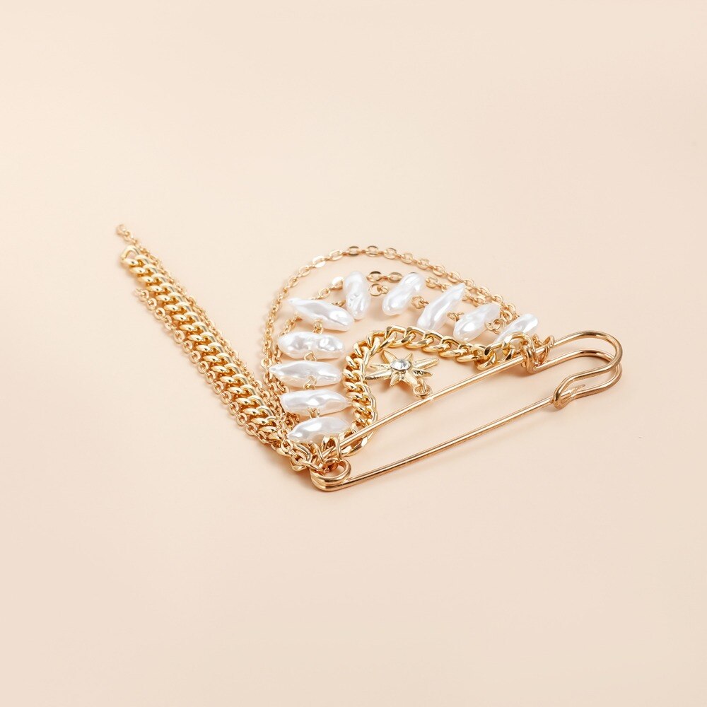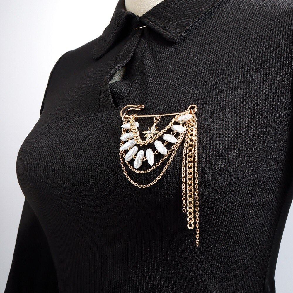 Brosa stea vintage, brosa cu ciucure cu lant de perle imitatie, material din aliaj, accesorii vestimentare pentru femei, accesorii pentru jacheta, decor pentru rucsac si palarie
