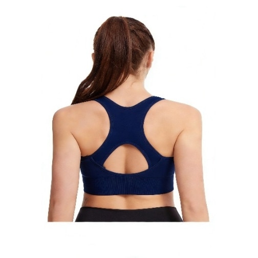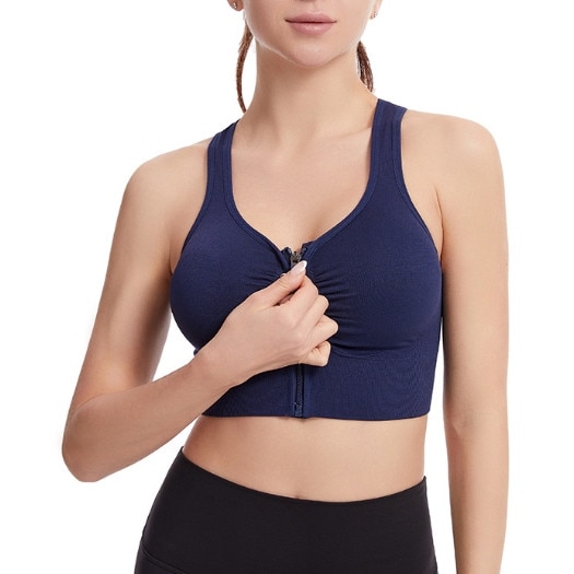 Bustieră sport JALWO, albastră, M, anti-soc, fermoar față, spate decorativ