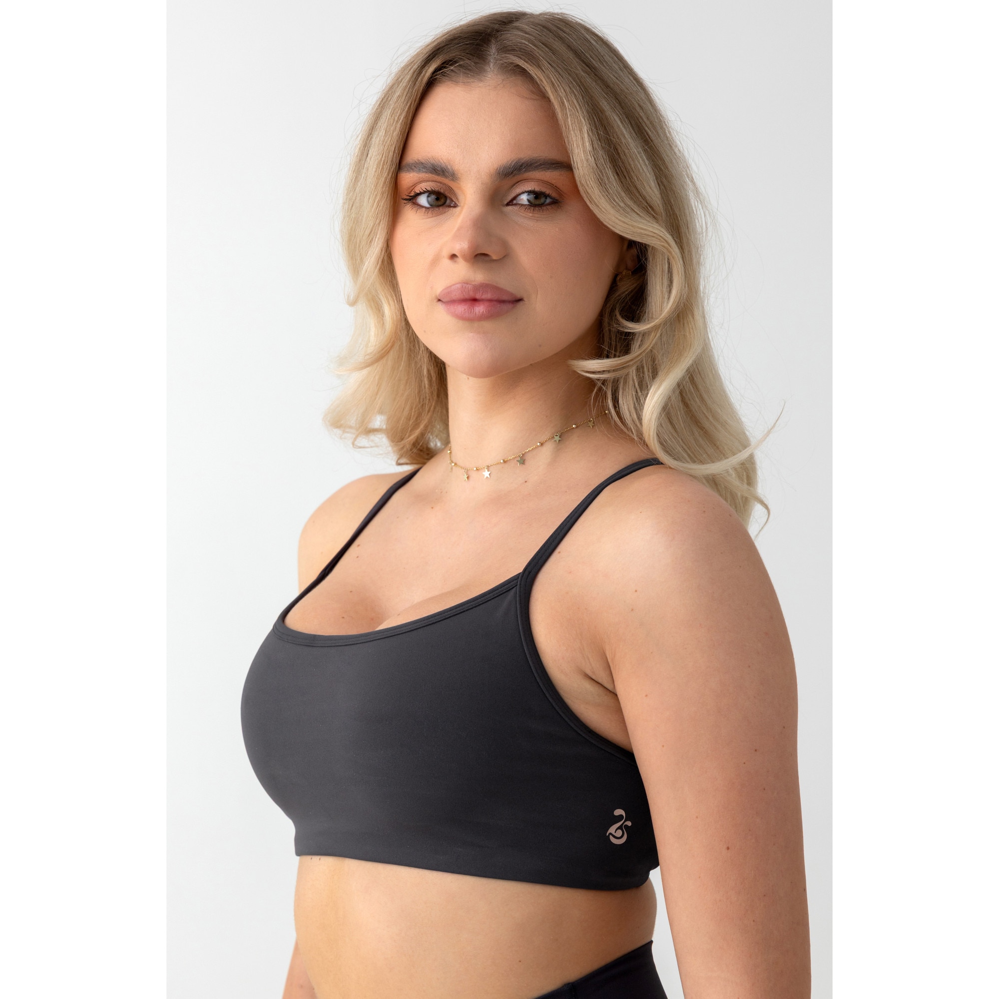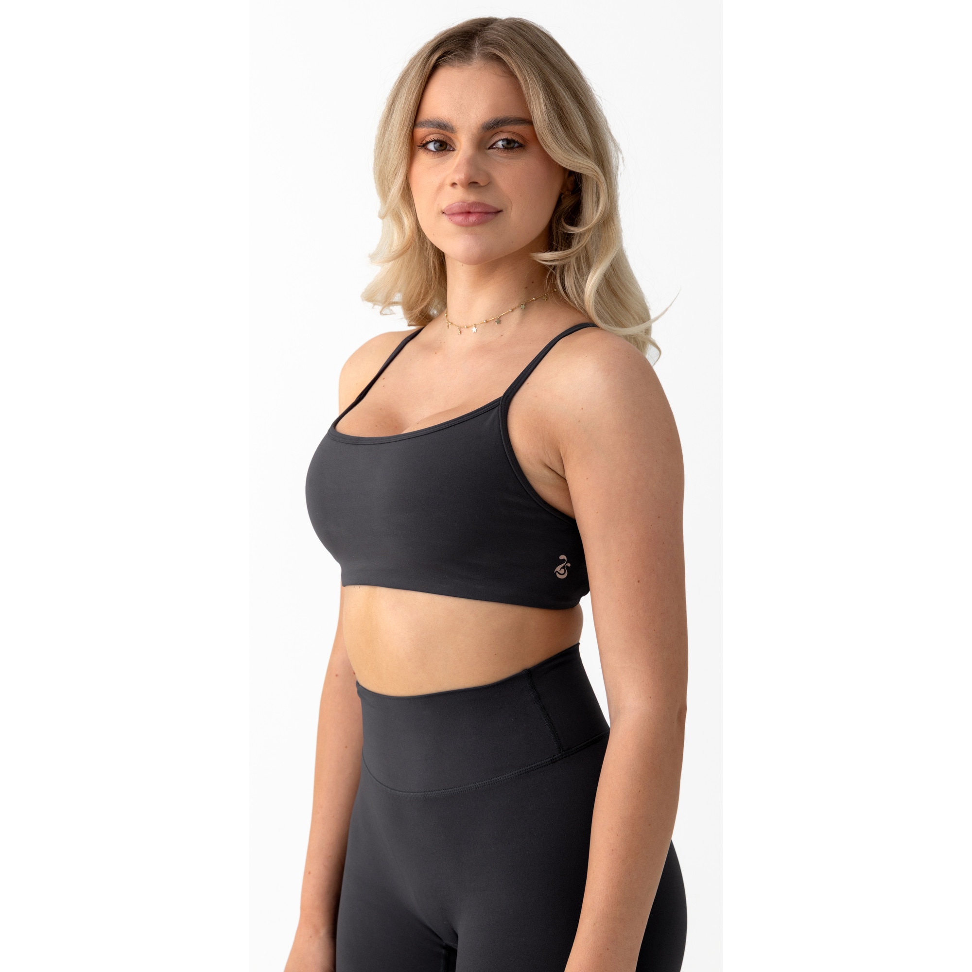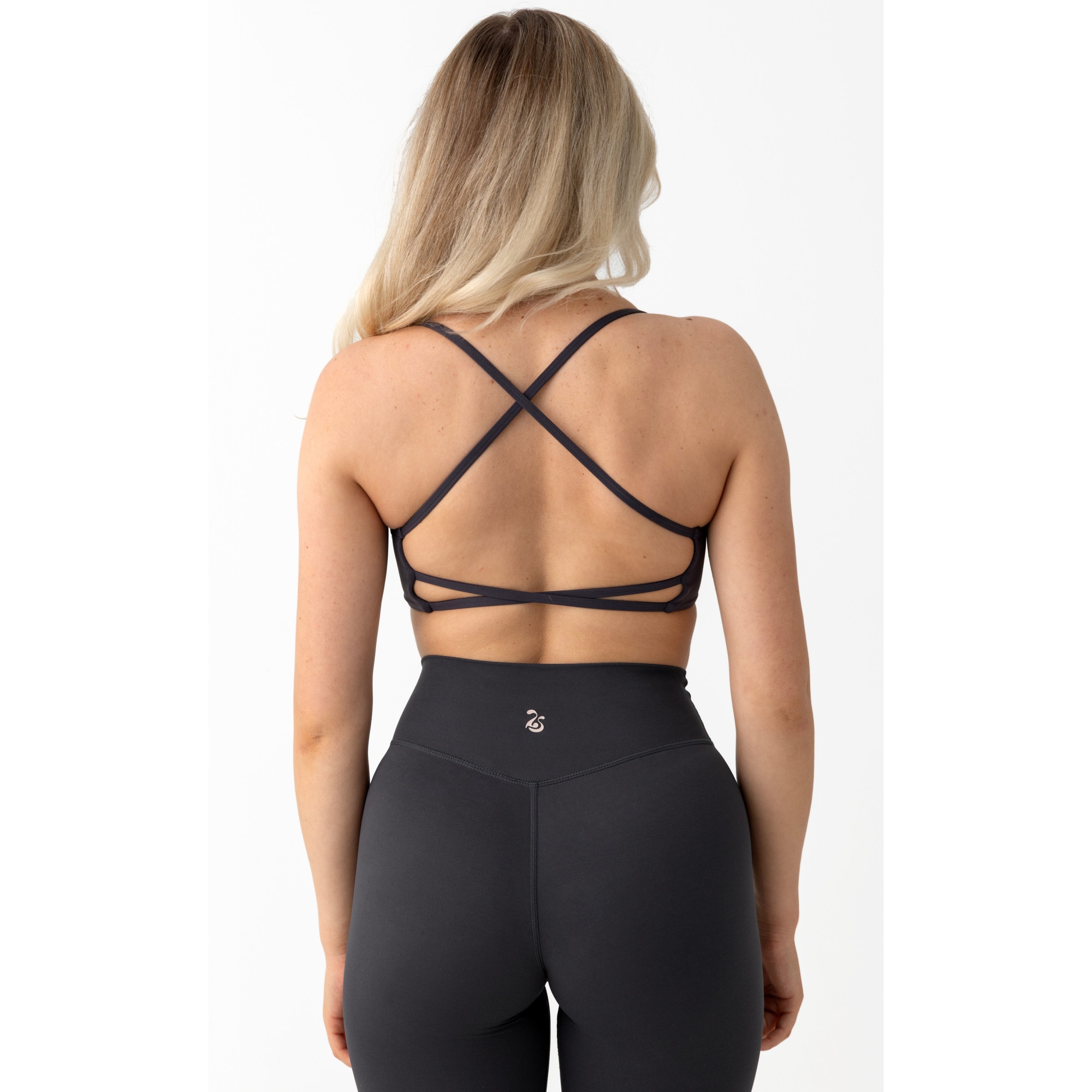 Bustiera Sport SkinAdapt Strappy, Gri Inchis, Sutinere Medie, S-M