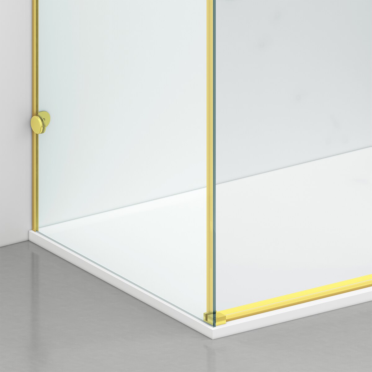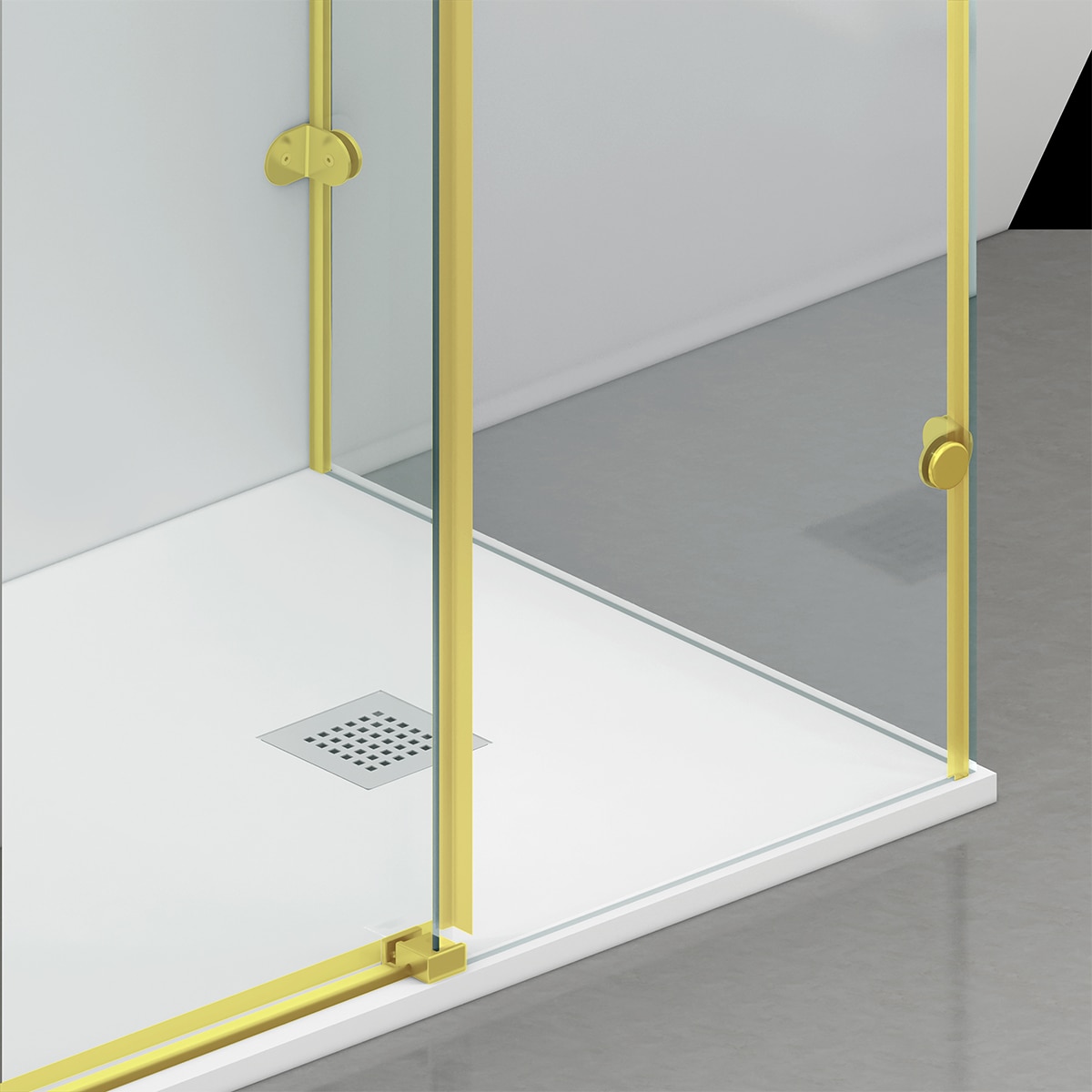 Sticla securizata de 8 mm, tratata cu tehnologia Nano Easy Clean, previne depunerile de calcar si murdarie, mentinand suprafetele curate si transparente, cu un efort minim. Sistemul glisant silentios, completat de doua pereti laterali ficsi, asigura o utilizare confortabila si sigura, iar profilurile aurii adauga o nota de lux subtil.