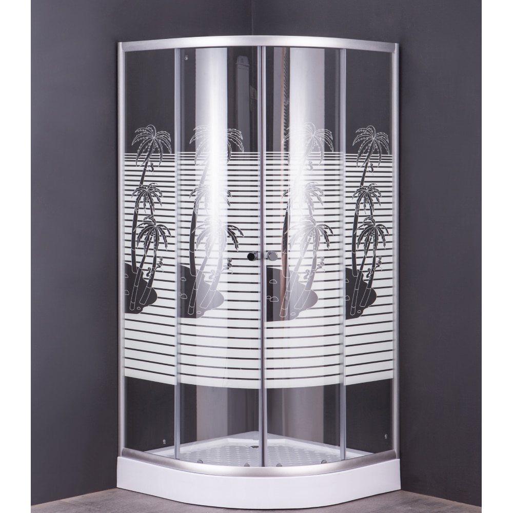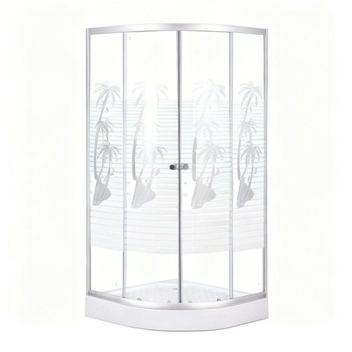 Cabina De Dus Simpla Semirotunda Porto, Sticla Serigrafiata 4 Mm Model Palmieri, 90X90X195 Cm, Profil Argintiu, Cadita Joasa Si Sifon Incluse