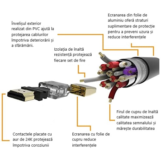 Este limitat de catre portul din care iese semnalul sau de asemenea de portul in care este transmis (daca porturile sunt 2.0 sau unul din ele cel putin este 2.0, cablul nu are ce sa faca - cu toate ca el suporta 2.1). El isi face treaba bine pe 4k 60Hz Editează