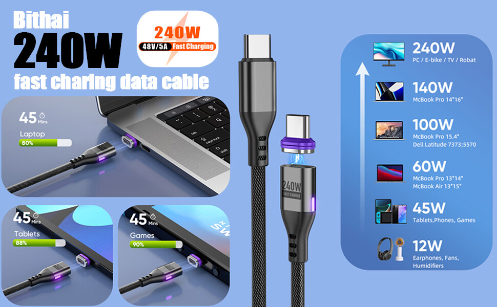 Cablu de date USB-C, Garsonal, 240W, 1.8m, PD3.1, incarcare super rapida, transfer date 480Mbps, 1,8m, compatibilitate universala, negru