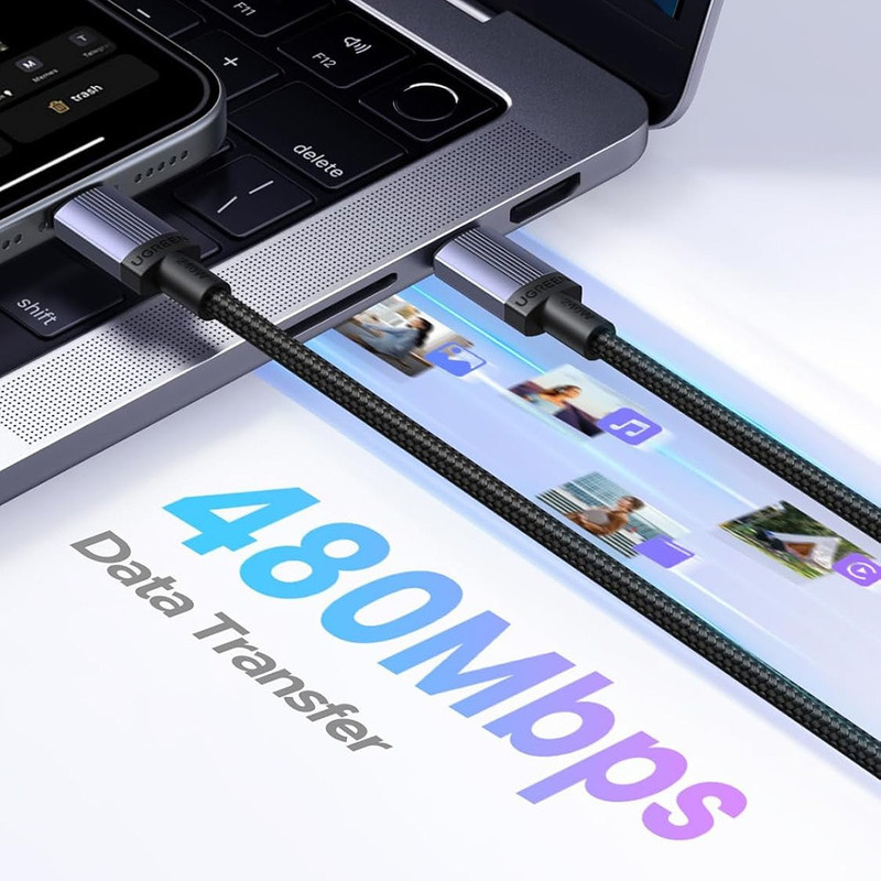 Cablu de incarcare Ugreen L532, Incarcare rapida, USB-C, 240W, 5A, 480Mbps, E-Marker Chip, 2m, Gri