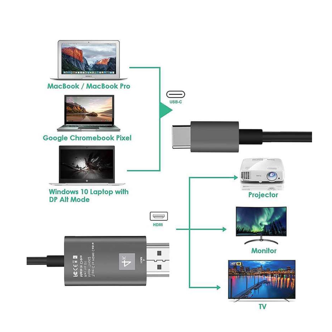 Cablu USB 3.1 Type C la HDMI 4K - Adaptor HUB de tip C pentru video HDMI 2 metri pentru Samsung Xiaomi si dispozitivele cu mufa Tip C, Negru, BBL666