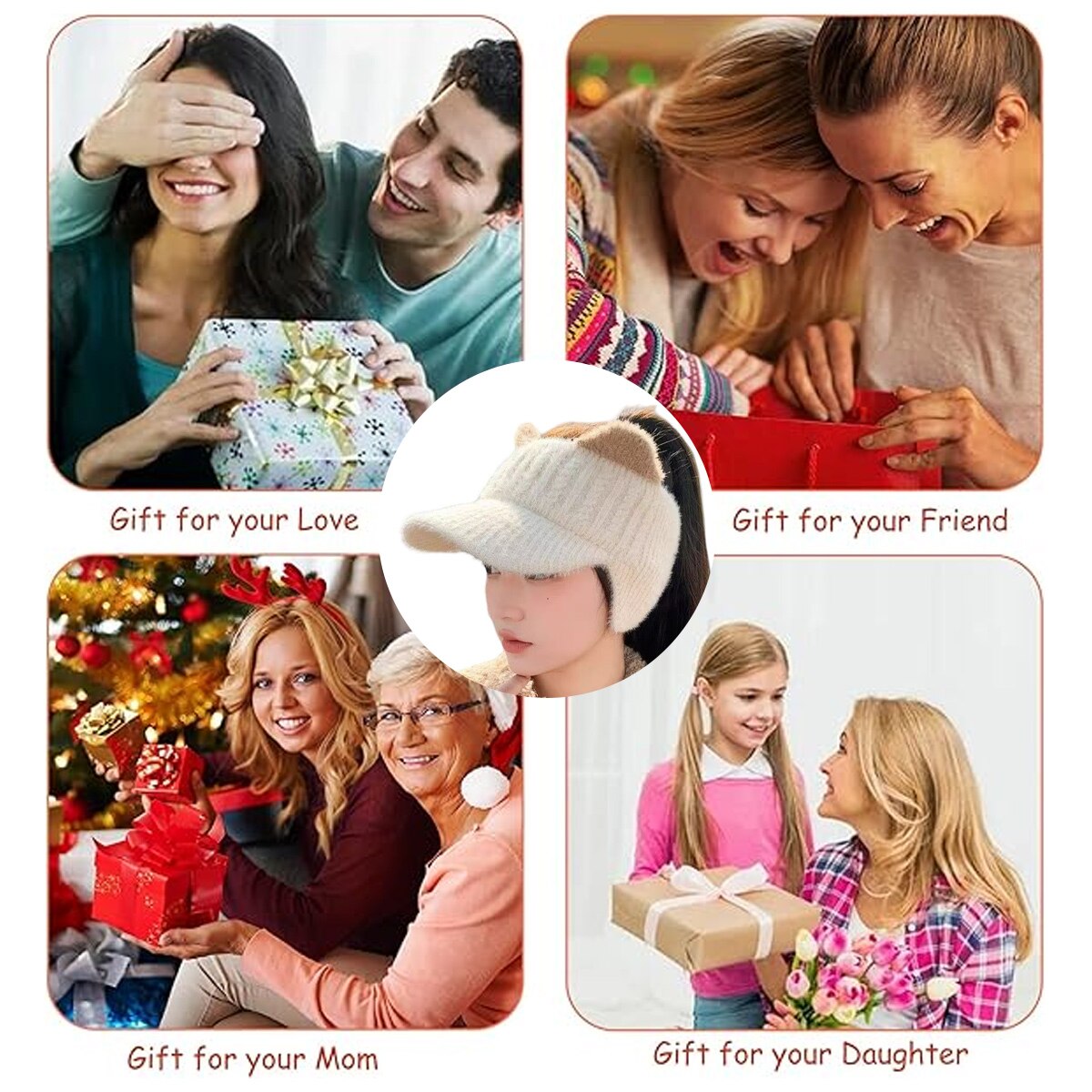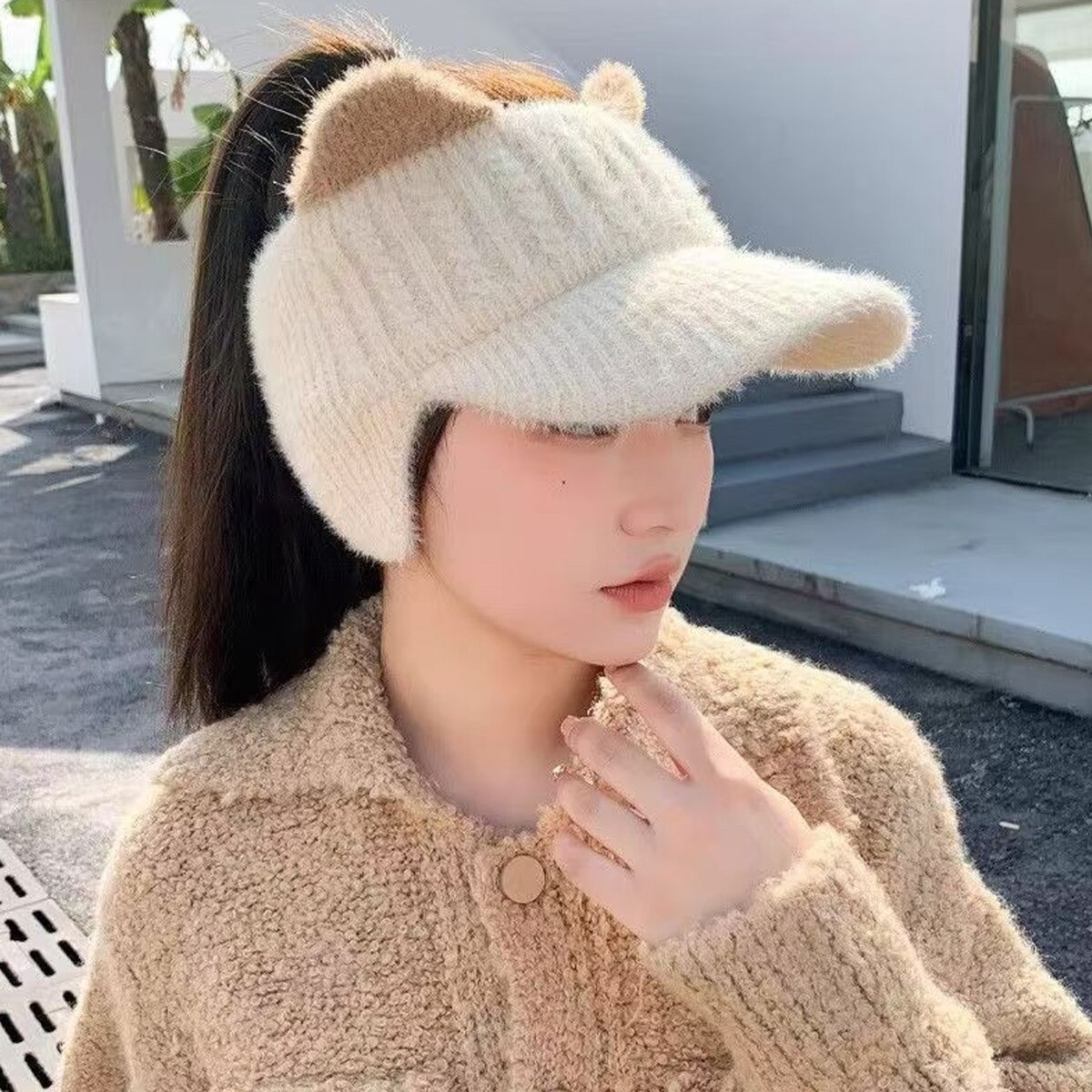 Caciula tricotata pentru femei, Cozevdnt, protectie urechi, lana acrilica, Alb, 60 cm