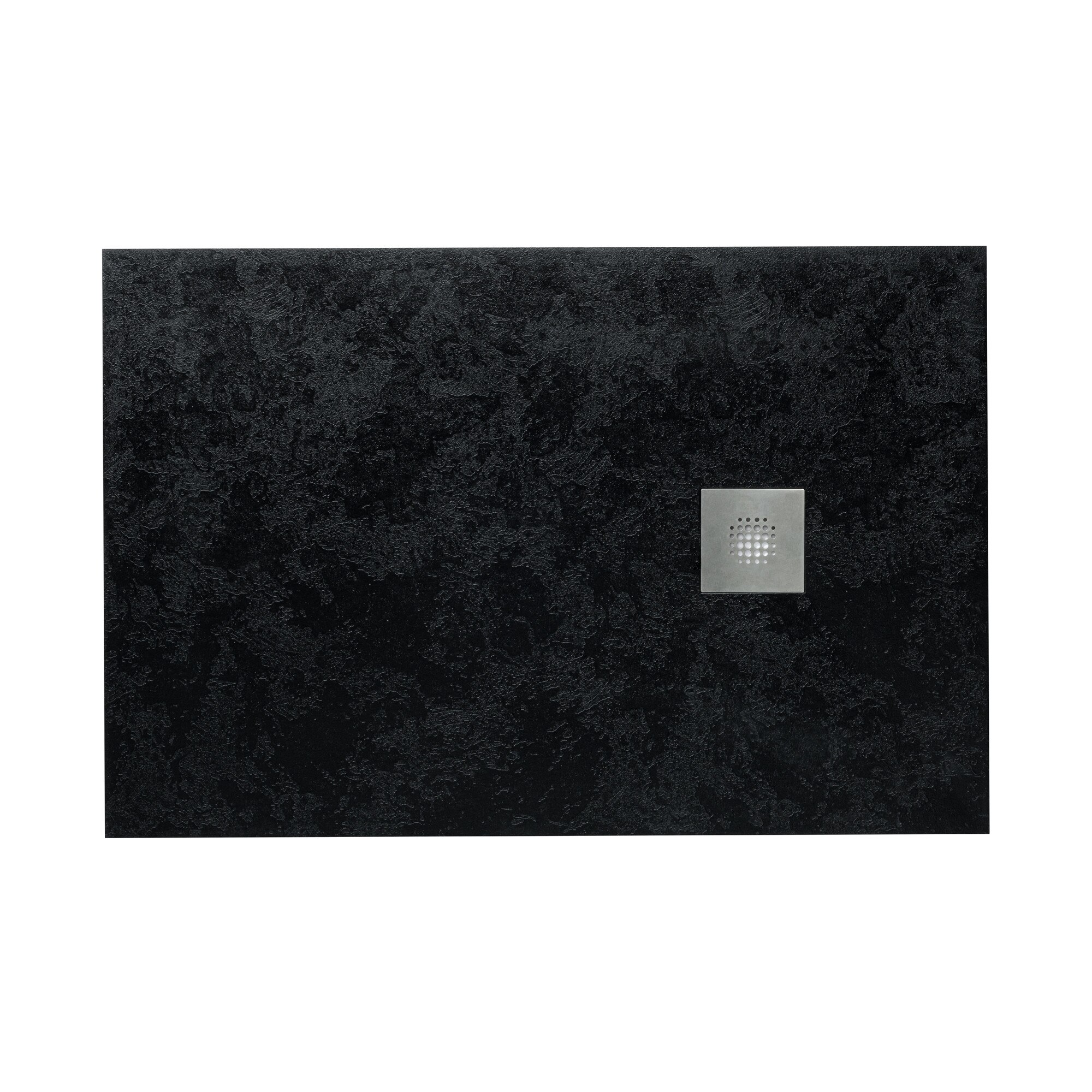 Cadita de dus slim ultra usoara ALUX Fibrex, 100x100 cm, negru, textura stone, cu grilaj inox