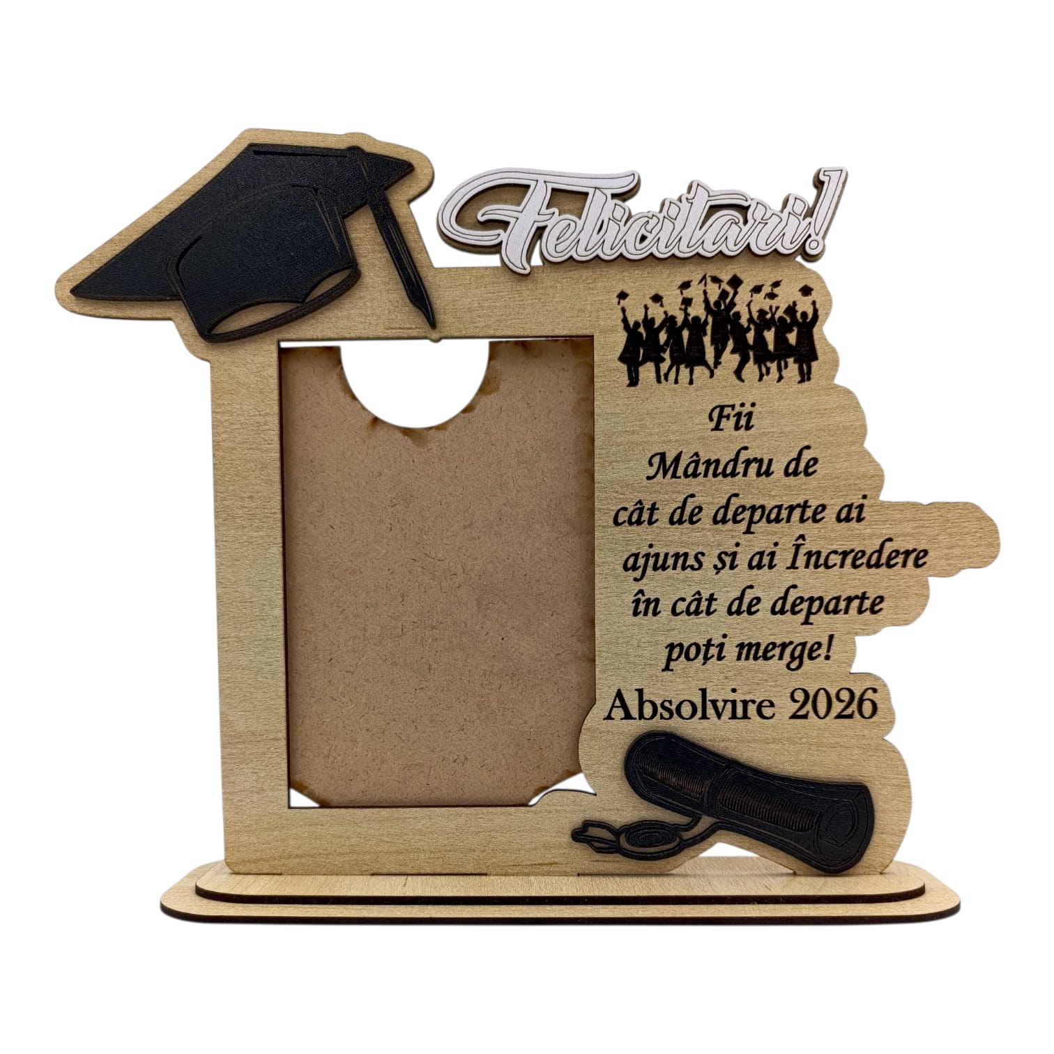 Cadou personalizat absolvire - Baiat - Rama foto din lemn cu mesaj gravat